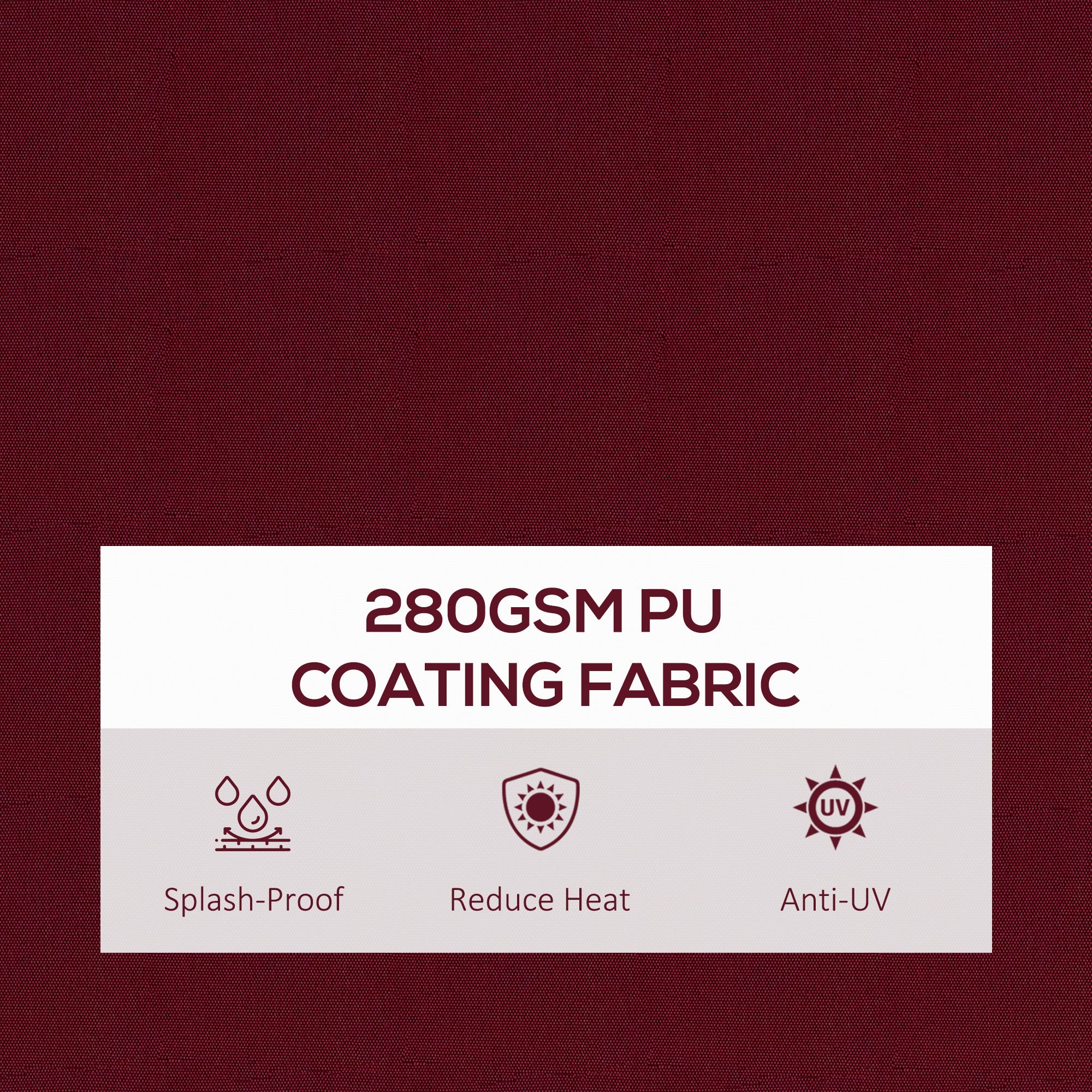 La toile en polyester 280 g/m² enduite de polyuréthane est résistante aux éclaboussures et offre une protection UV30+. Sa structure en aluminium thermolaqué et en métal assure légèreté, robustesse et durabilité face aux conditions extérieures.