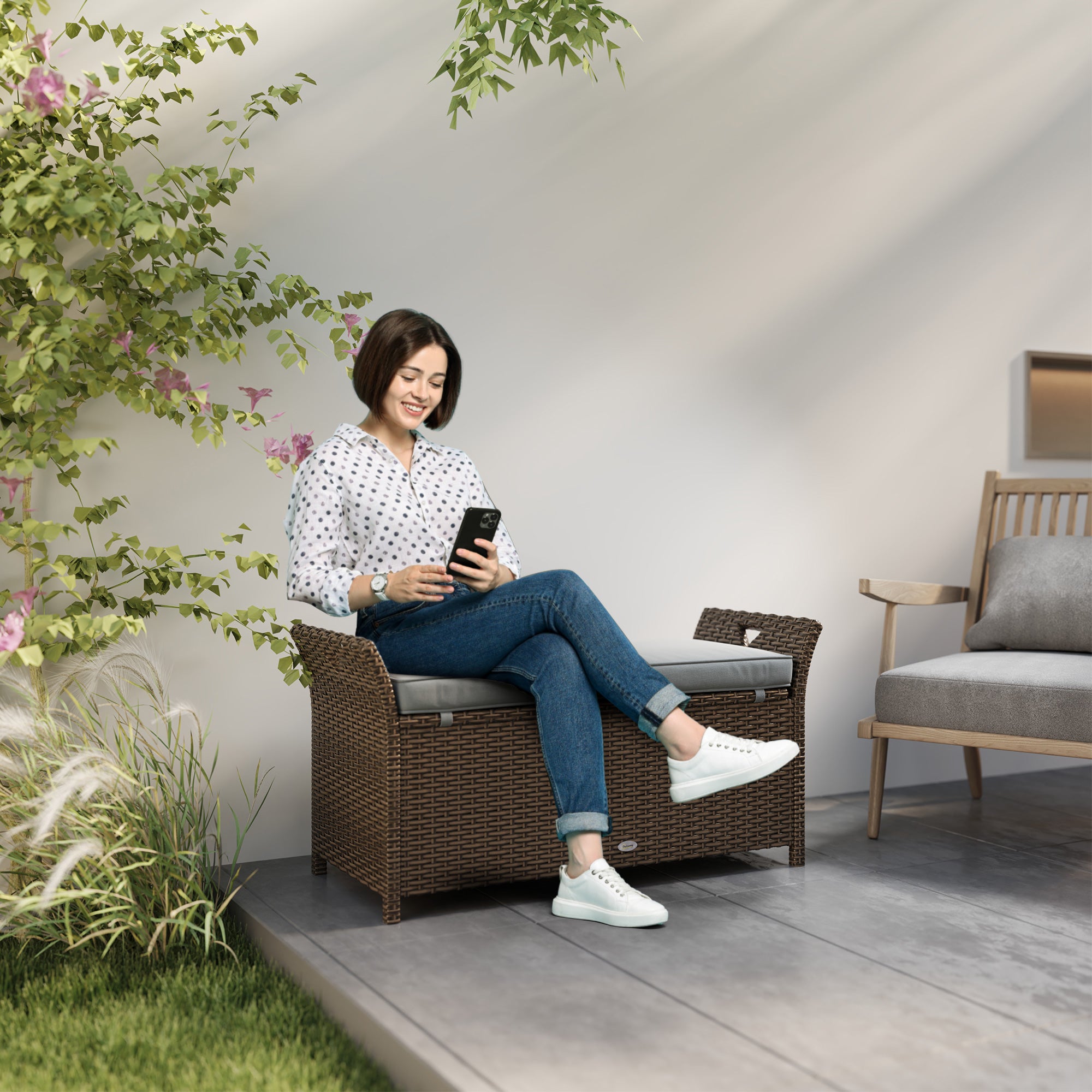 Ce banc de terrasse 2 en 1 allie élégance et praticité avec son tressage en rotin PE à l’aspect naturel et son coussin épais offrant une assise confortable. Son design soigné s’intègre parfaitement aux espaces extérieurs tels que la terrasse, le balcon ou les abords de la piscine.