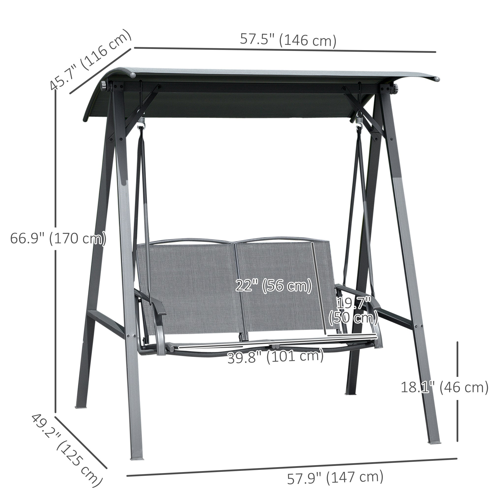 Sa structure métallique robuste en forme de A assure une grande stabilité et supporte jusqu’à 352 lb. La toile en polyester ajustable et les sièges en textilène respirant offrent durabilité et confort pour un usage extérieur prolongé.