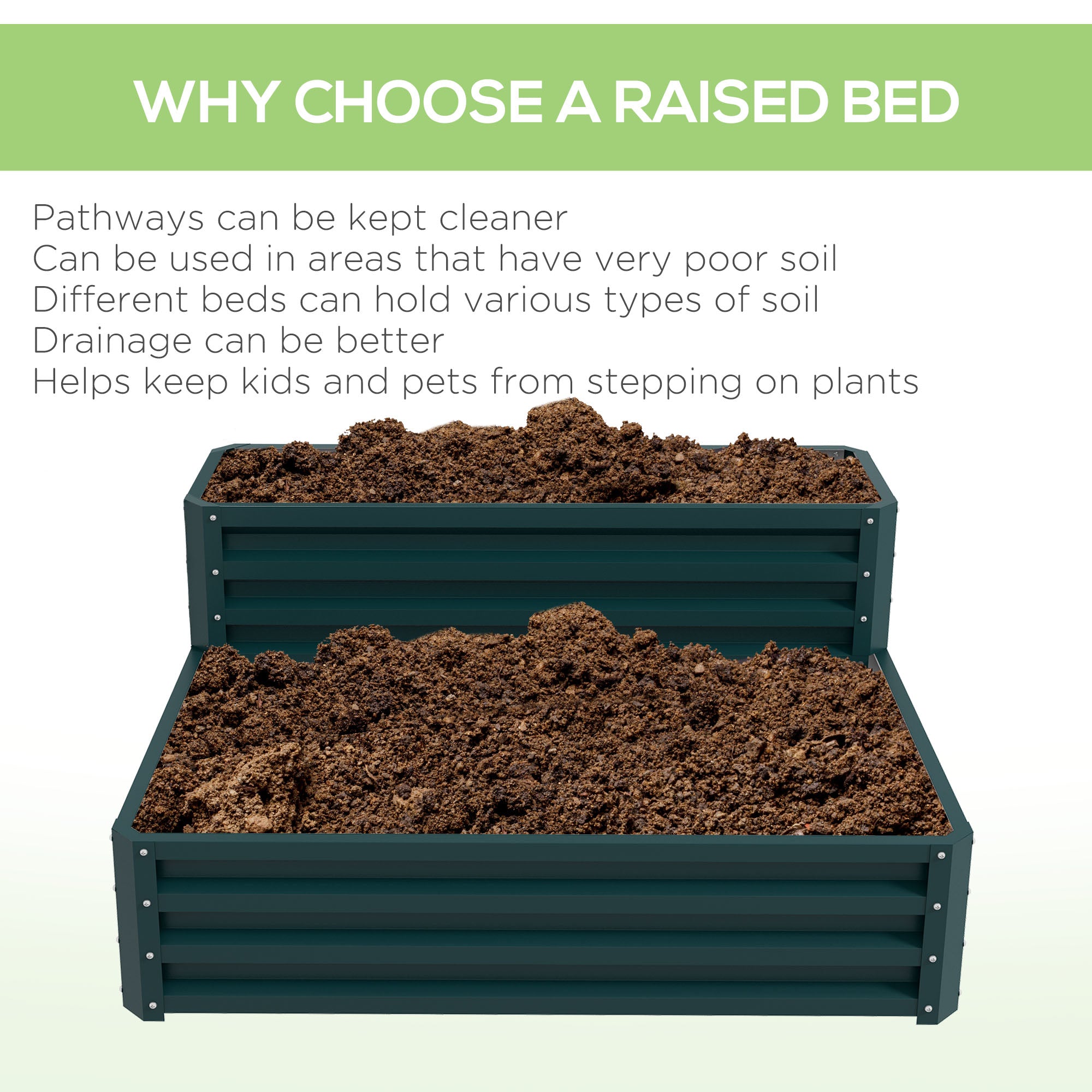 Bacs surélevés en métal galvanisé à deux niveaux pour jardin