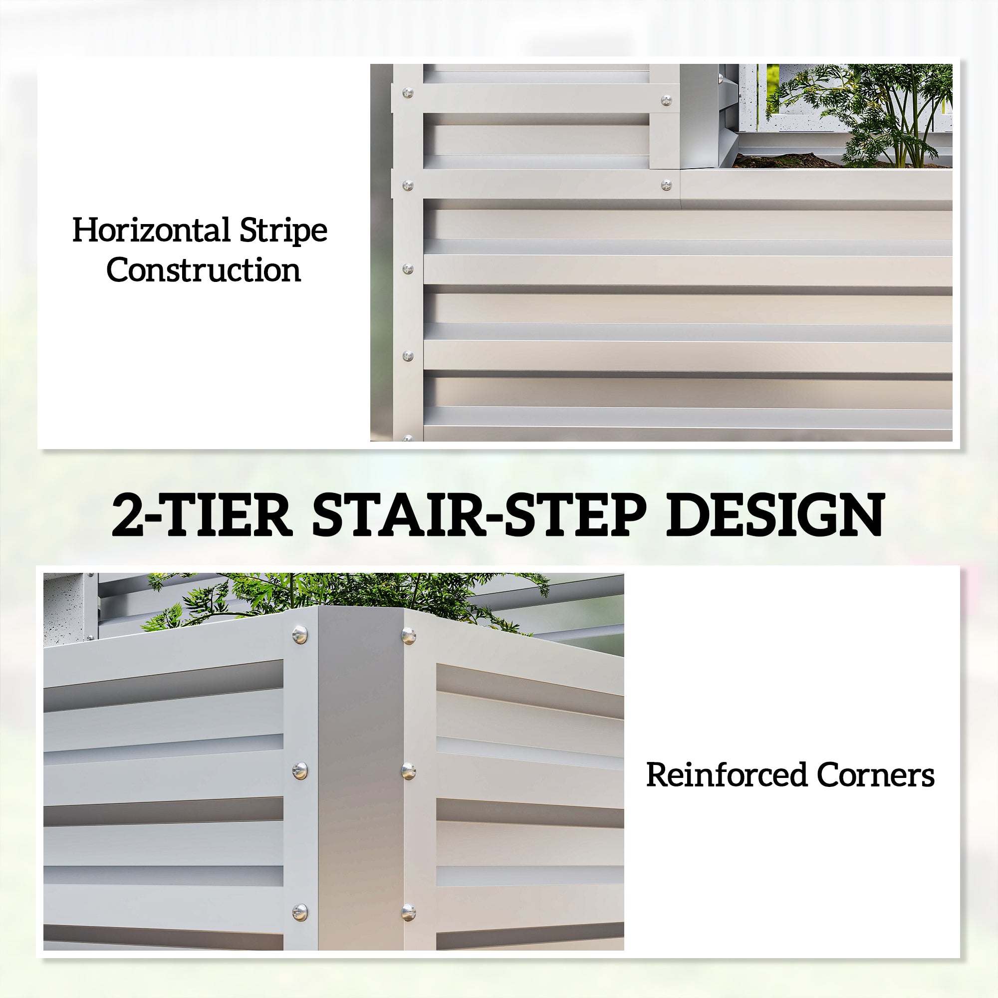 Fabriqués en acier galvanisé avec revêtement protecteur et peinture, ces bacs offrent une excellente stabilité et une résistance accrue aux intempéries. Leur structure robuste garantit une utilisation extérieure durable saison après saison.