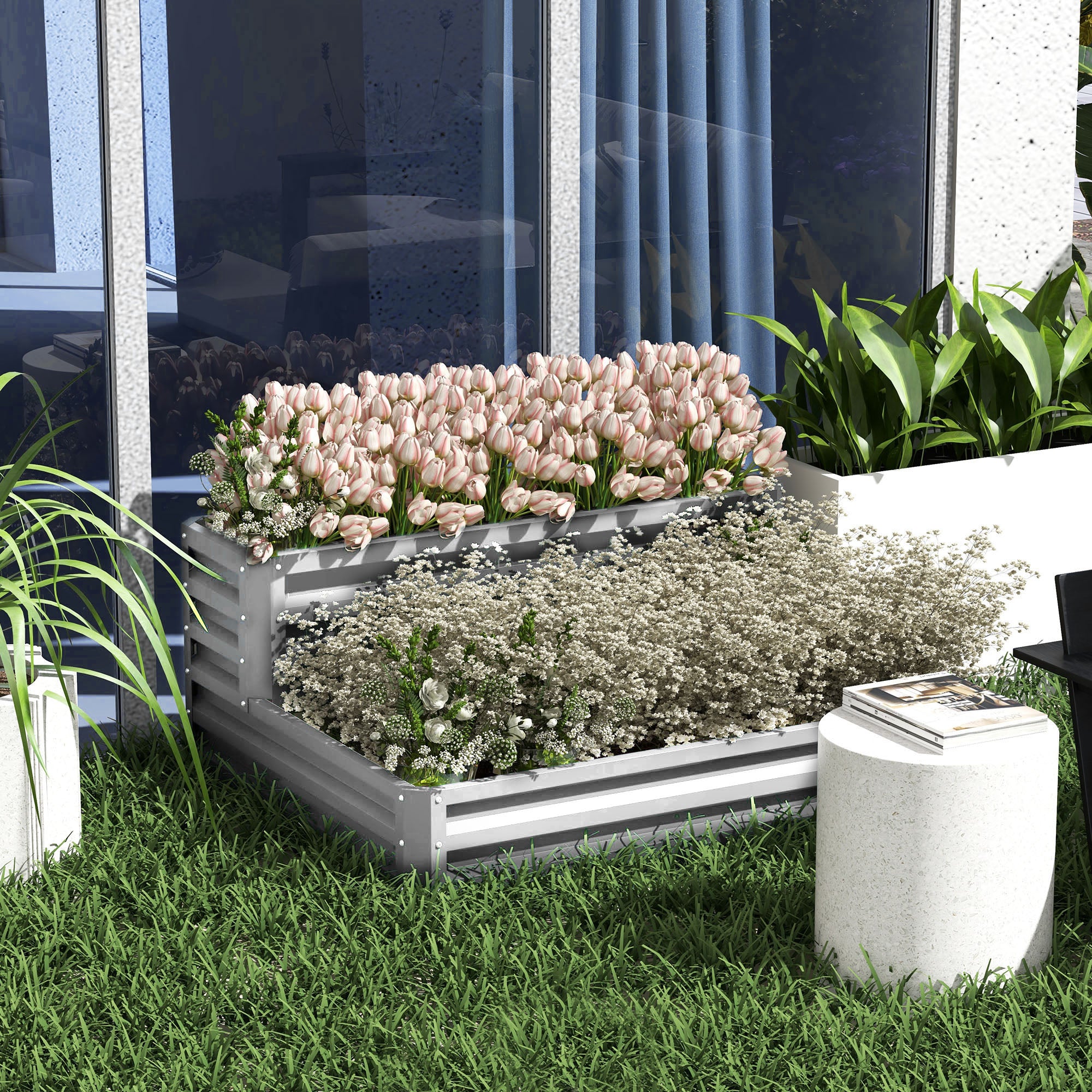 Ces bacs surélevés en métal offrent une solution pratique et esthétique pour cultiver fleurs, légumes et herbes aromatiques en extérieur. Leur conception à deux niveaux permet de structurer votre espace de culture tout en apportant un style moderne et épuré à votre jardin.