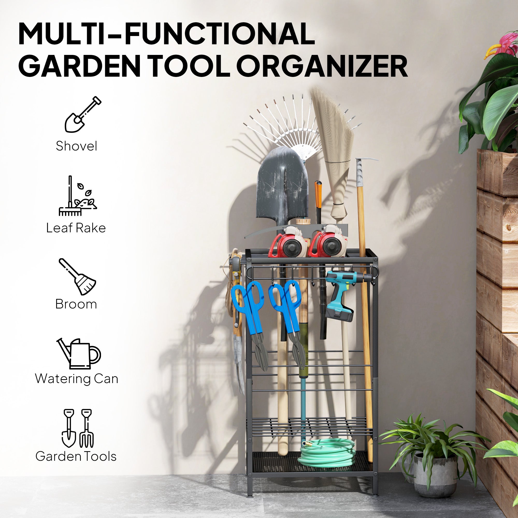 - Contient : 1 support de rangement pour outils de jardin, 1 mode d'emploi