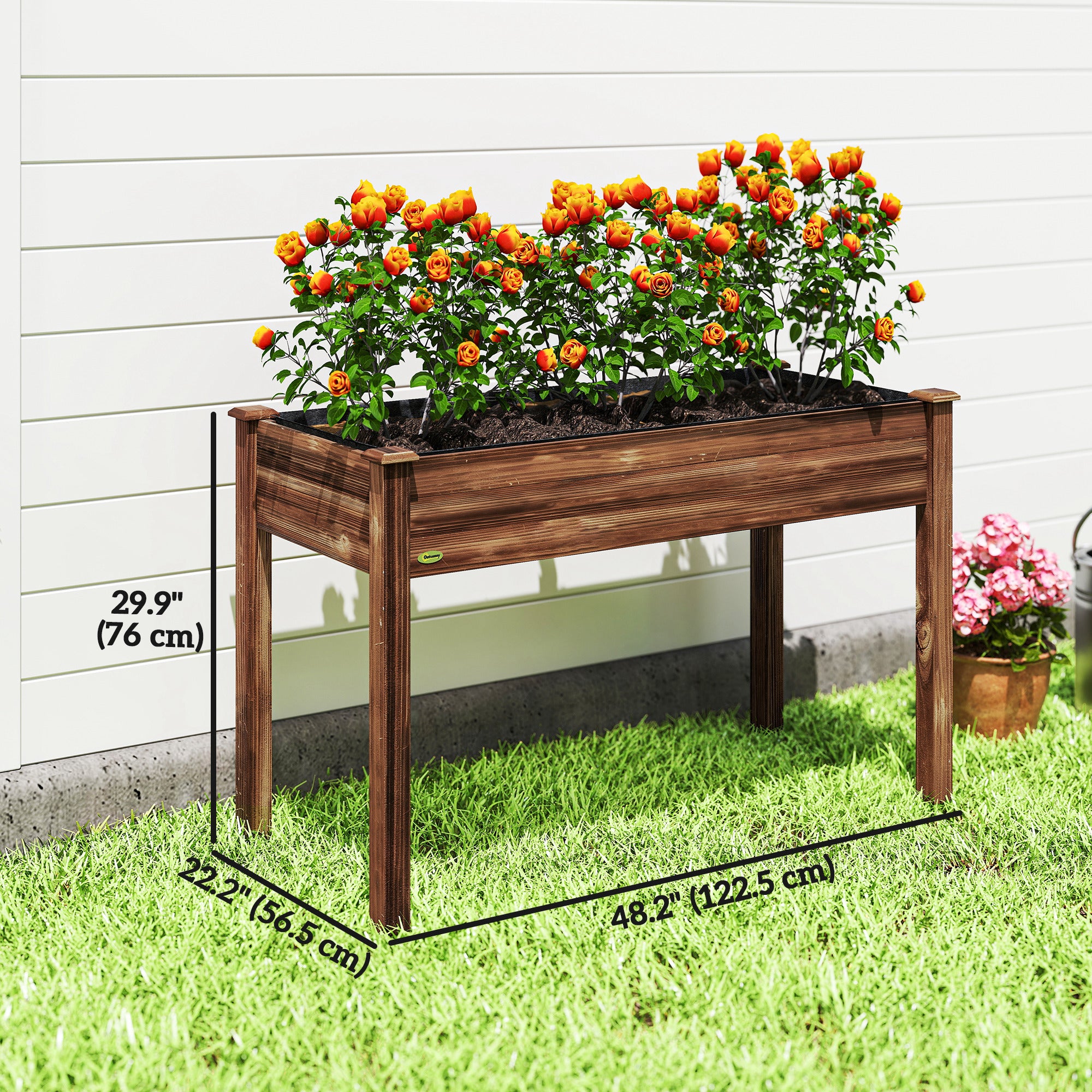 Fabriquée en bois de sapin massif, cette jardinière est conçue pour une utilisation durable en extérieur. La doublure intérieure en tissu non tissé assure une bonne respirabilité et une perméabilité optimale, tandis que les trous de drainage permettent une évacuation efficace de l’eau.