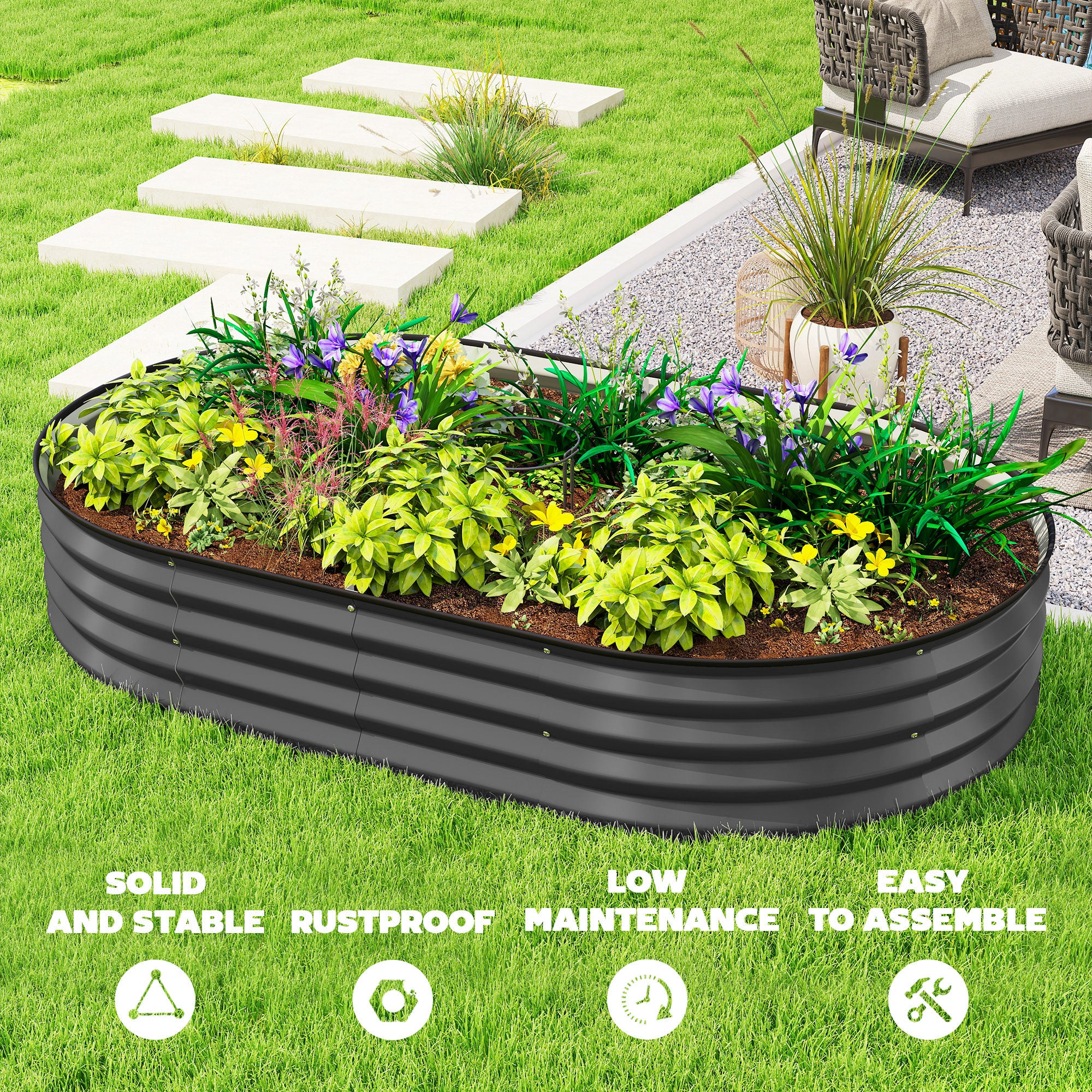 Bac à fleurs surélevé en métal galvanisé pour jardin et balcon