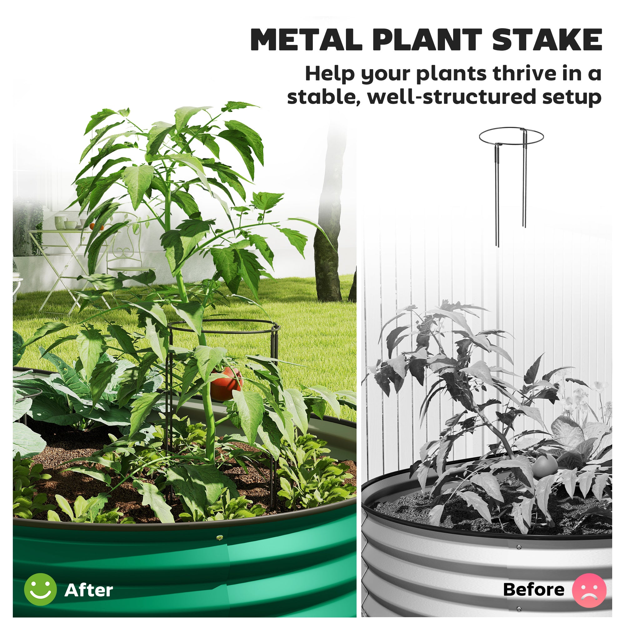Doté d’un tuteur métallique intégré, ce bac favorise la croissance des plantes grimpantes et aide à stabiliser les espèces plus hautes. Son fond ouvert permet aux racines de se développer librement dans le sol, favorisant une croissance saine et vigoureuse.