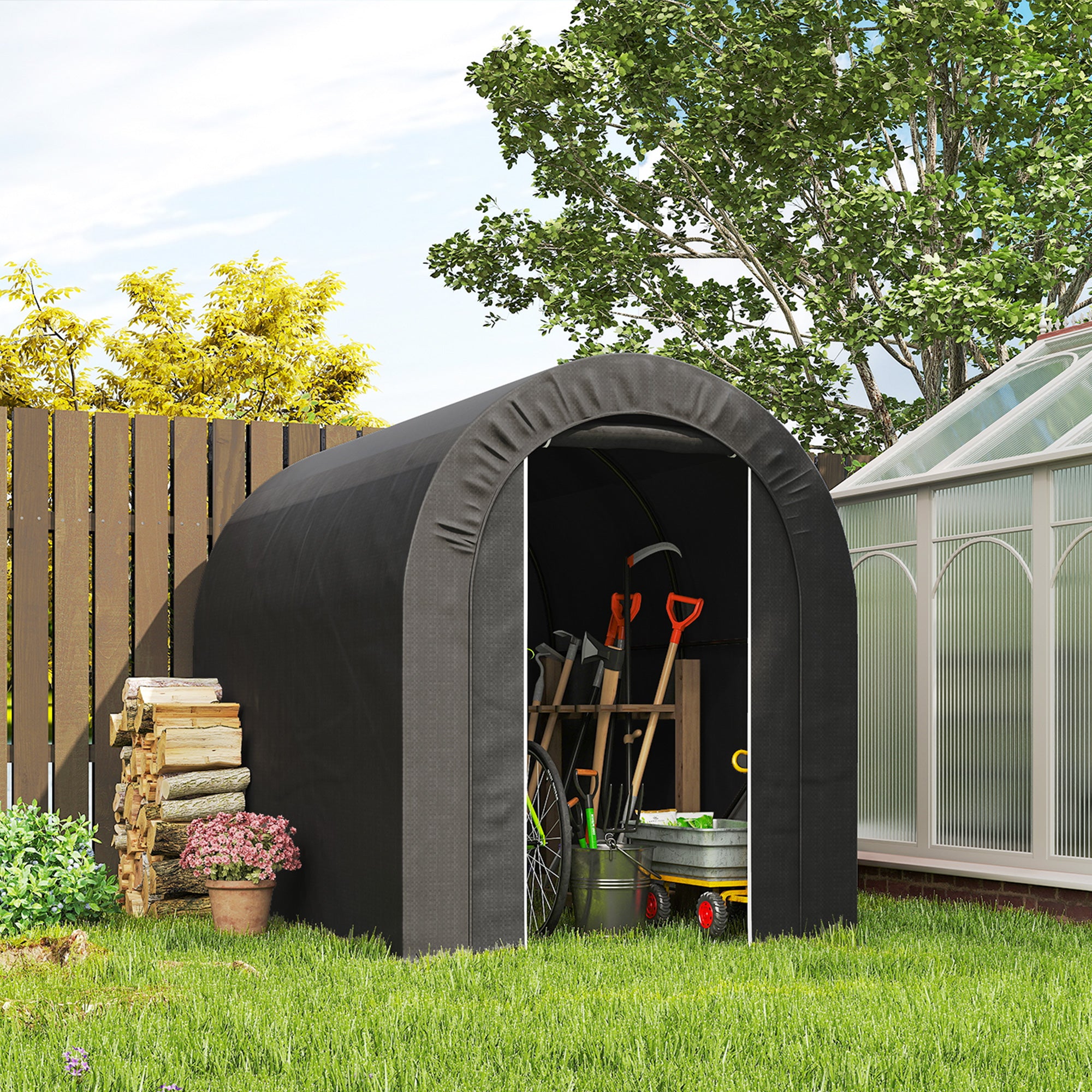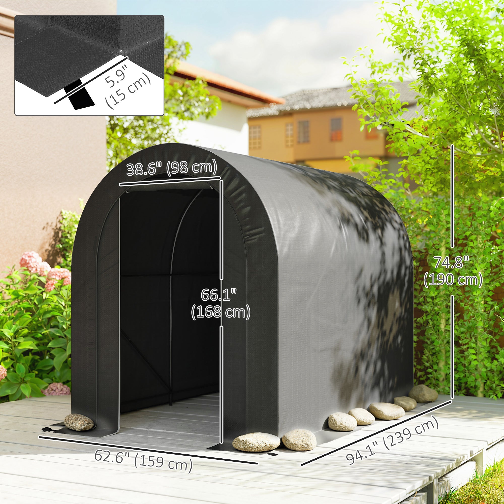 Abri à moto extérieur 7,8 pi x 5,2 pi en acier galvanisé noir et argent