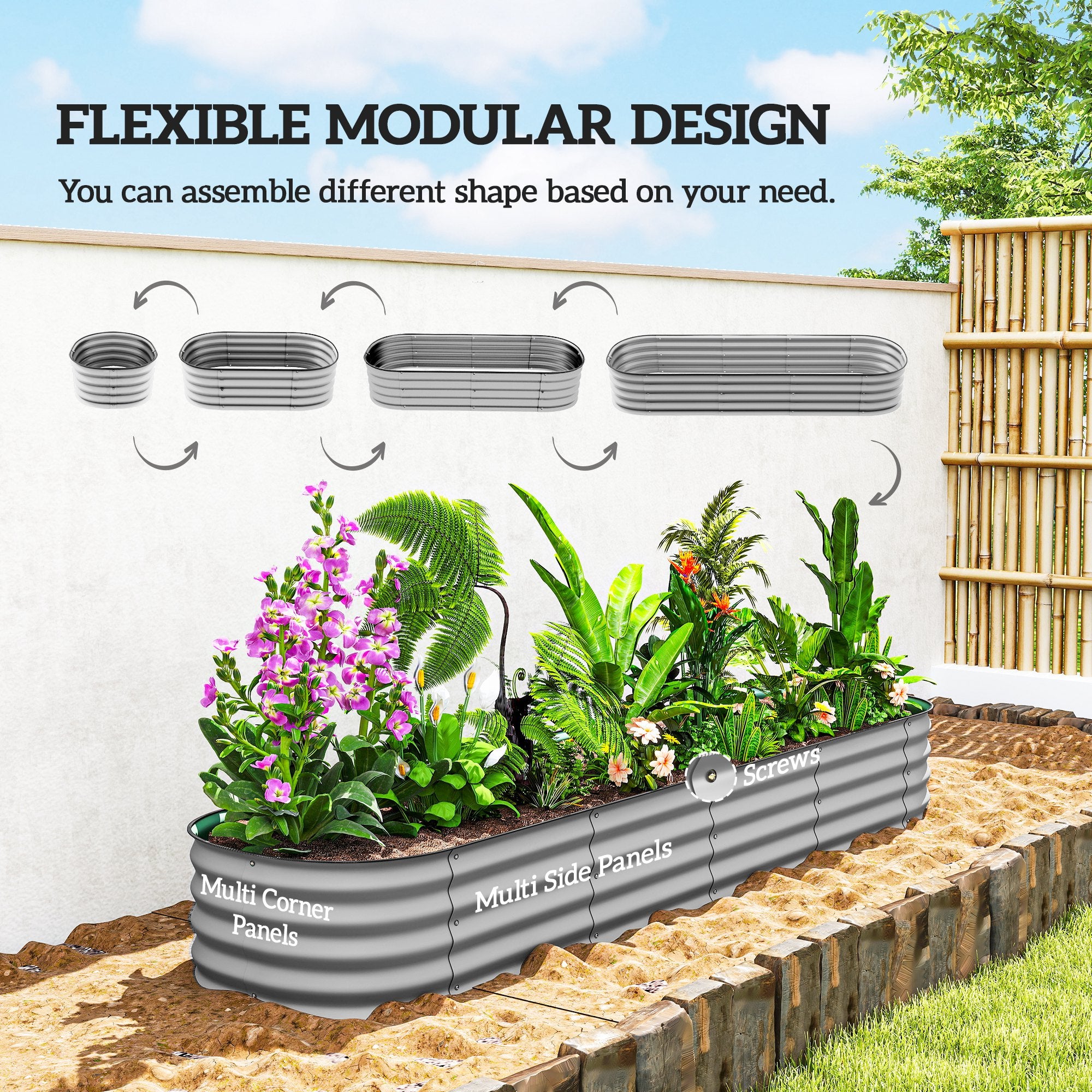 Sa conception modulaire flexible permet un assemblage personnalisé selon vos besoins. Facile à assembler, ce bac vous permet d’aménager rapidement votre espace de culture et de commencer à jardiner sans délai.