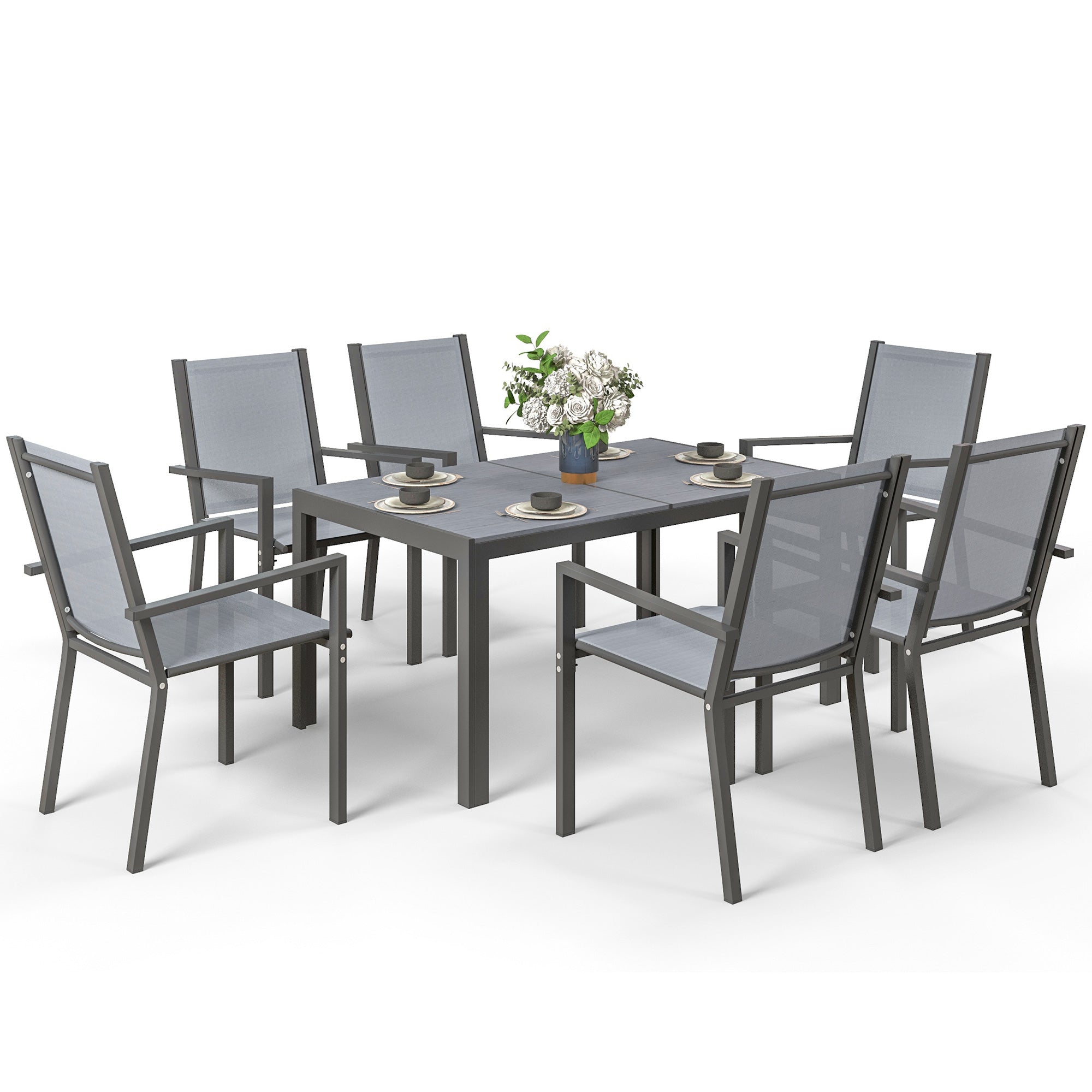 Ensemble repas de jardin 7 pièces avec table rectangulaire et chaises empilables