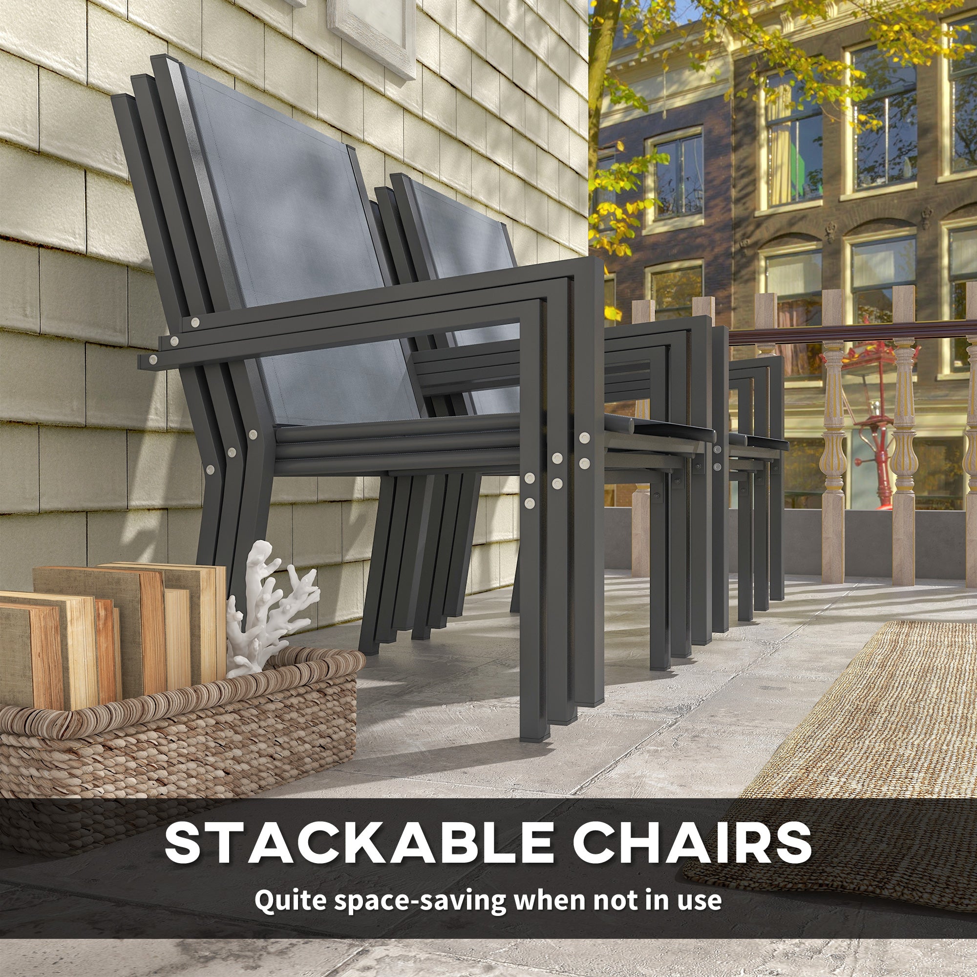 Confort et design : Profitez pleinement de vos repas en plein air grâce à cet ensemble repas de jardin pensé pour le confort et la convivialité. Les chaises sont dotées d’assises et de dossiers en tissu mesh respirant qui favorisent la circulation de l’air et assurent une assise agréable même lors des journées chaudes d’été.