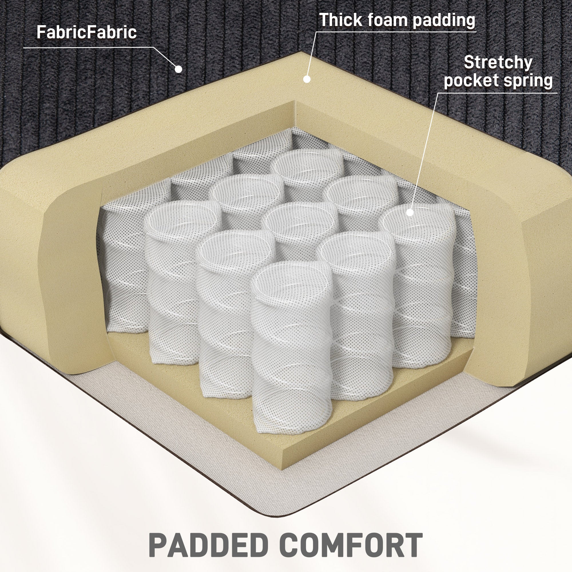 Matériaux de qualité : Le rembourrage combine ressorts ensachés, ressorts en serpentin et bandes élastiques pour offrir un excellent soutien, un rebond agréable et un confort durable. Son tissu corduroy résistant ajoute une touche chaleureuse tout en étant agréable au toucher.