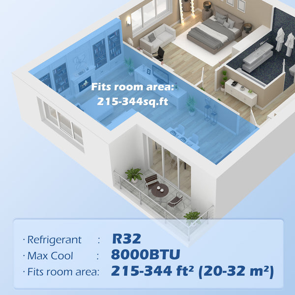 - Conception portable : Compact et puissant, ce climatiseur est conçu pour les petits espaces. Ses 4 roulettes pivotantes permettent un déplacement aisé sur différents types de sols. Il rafraîchit des pièces jusqu'à 344 pi² avec une puissance de 8 000 BTU.