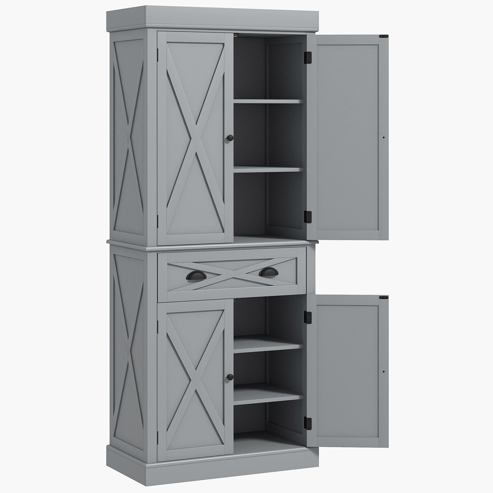 Buffet de cuisine gris – Armoire haute avec tiroir et étagères réglables
