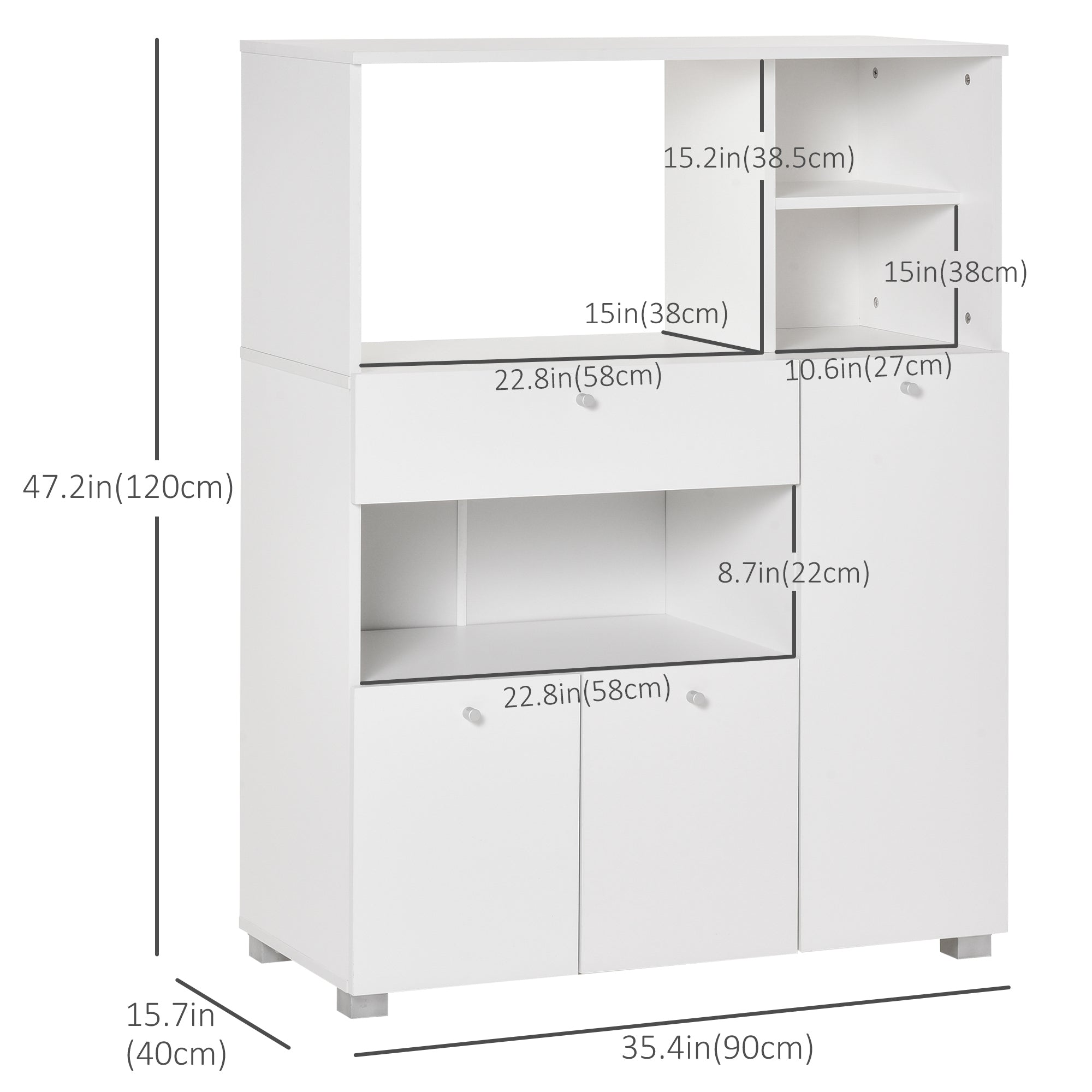 Meuble micro-ondes blanc – Buffet de cuisine avec tiroir et rangements multiples