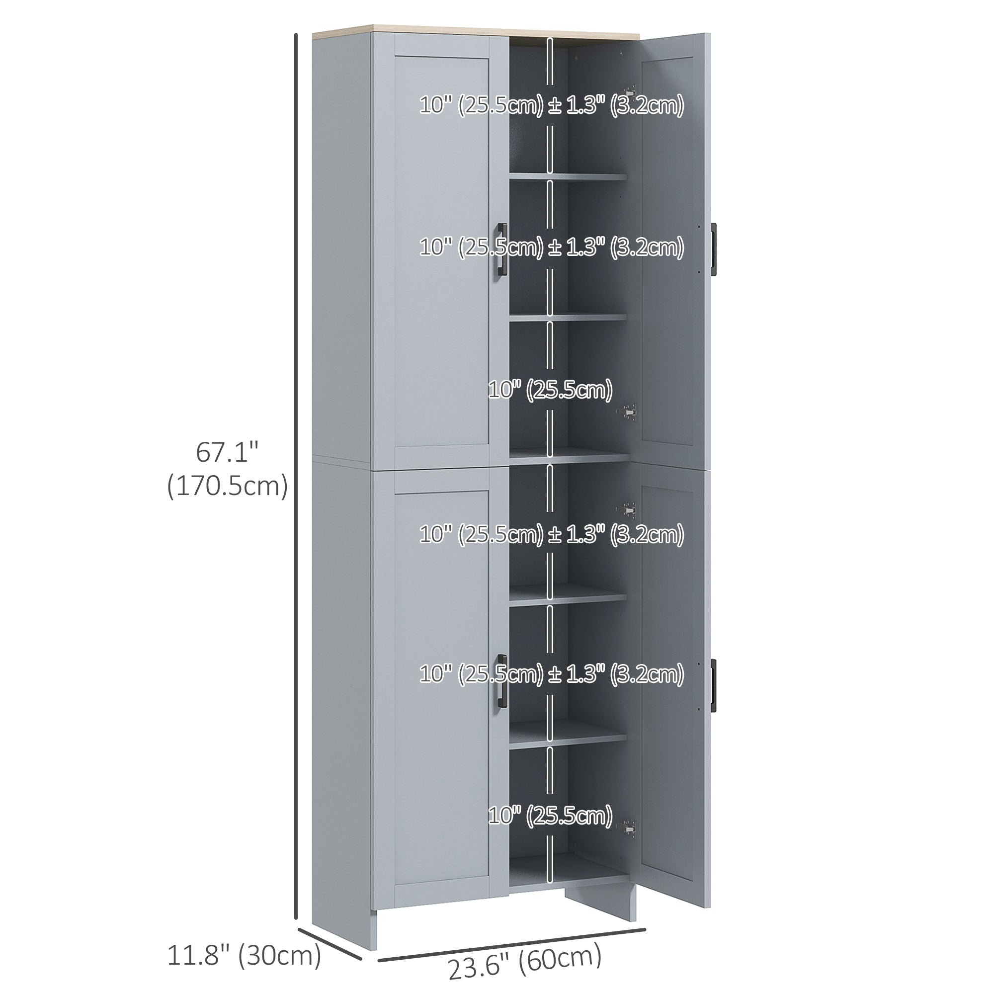 Garde-manger gris et bois naturel – Armoire de cuisine haute à 4 portes avec étagères réglables