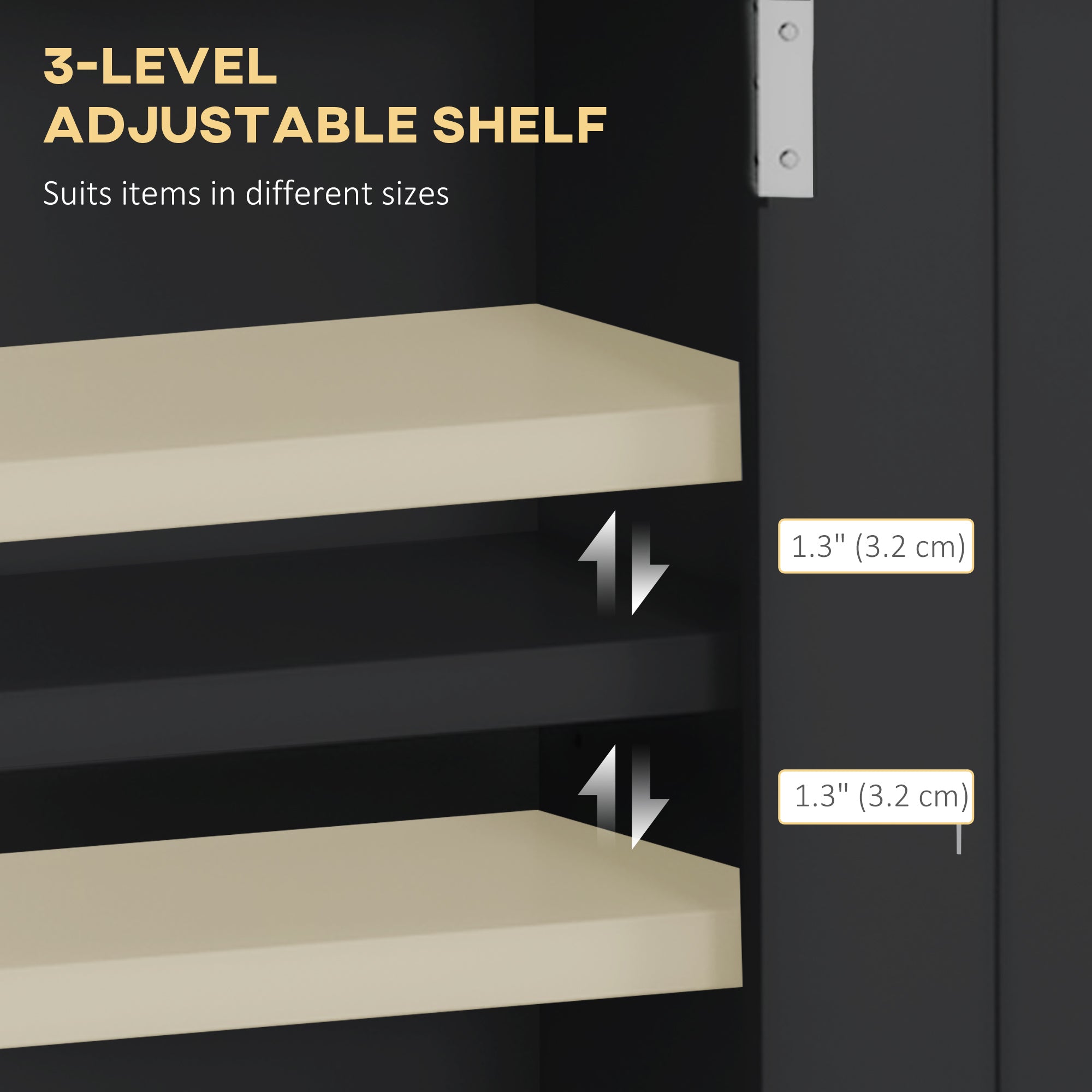 Grand espace de rangement : Comprend une armoire fermée à deux niveaux et une étagère ouverte pour ranger shampoings, produits de soin et petits objets. L’étagère intérieure est réglable en hauteur et permet de stocker des articles de différentes tailles.