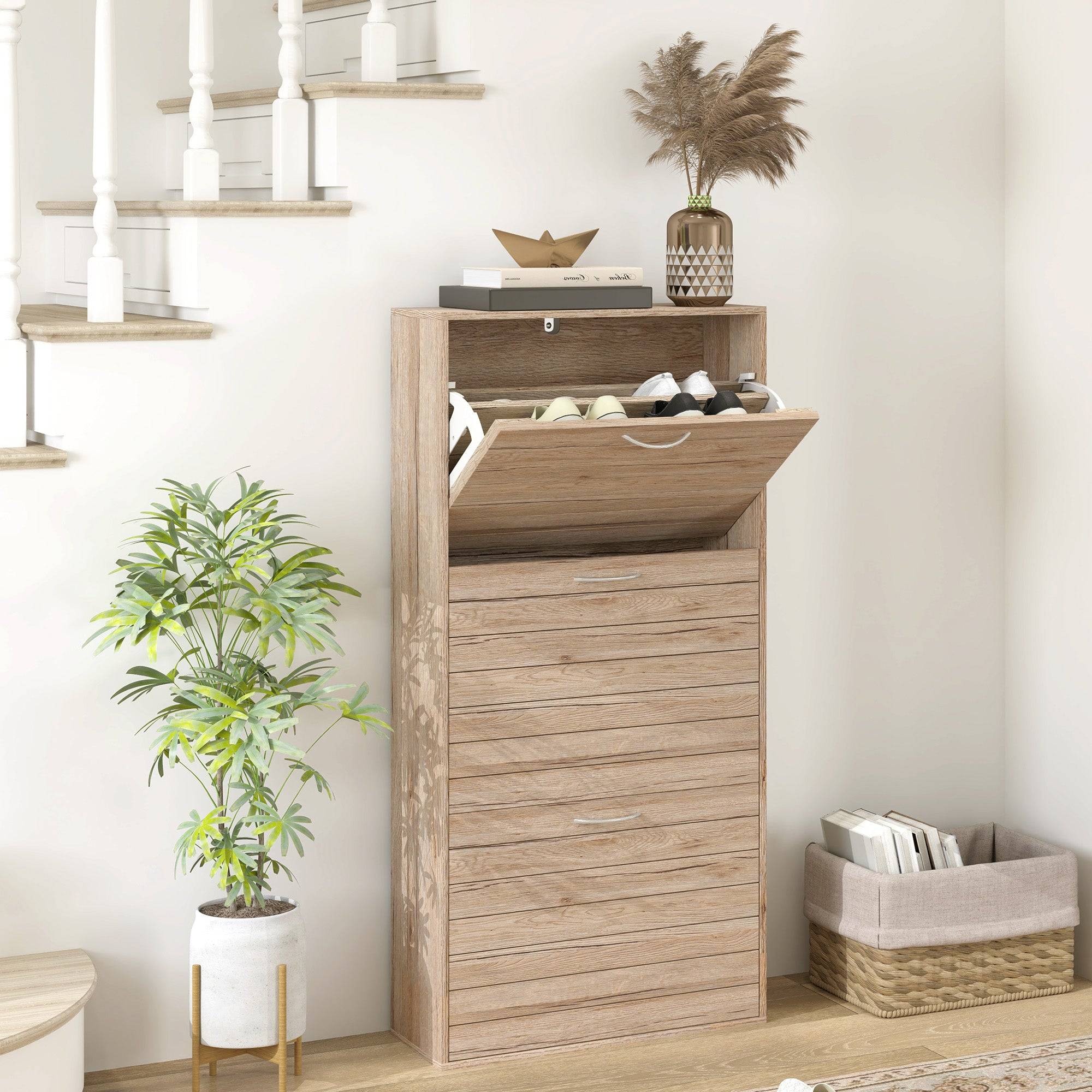 - Style moderne : les panneaux effet bois et les façades à rainures droites permettent à ce meuble de rangement à chaussures d'entrée de s'adapter à la plupart des styles de meubles de maison.