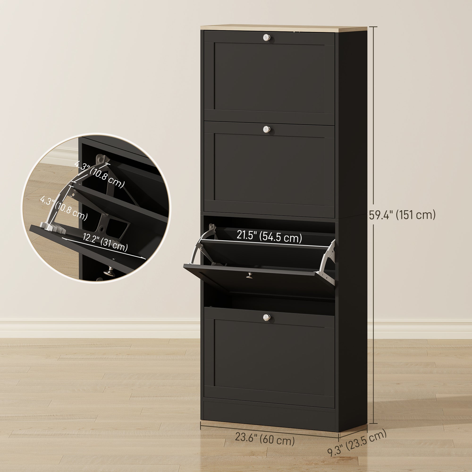 Meuble à chaussures étroit à 4 abattants – Noir