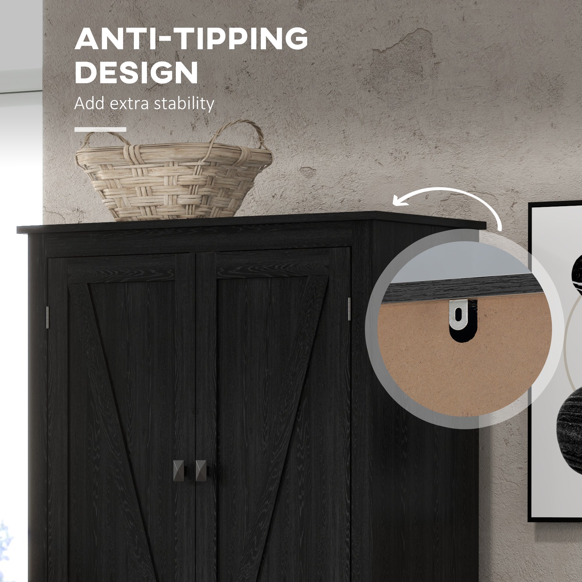 Buffet de cuisine noir – Armoire haute à portes style grange avec étagères réglables