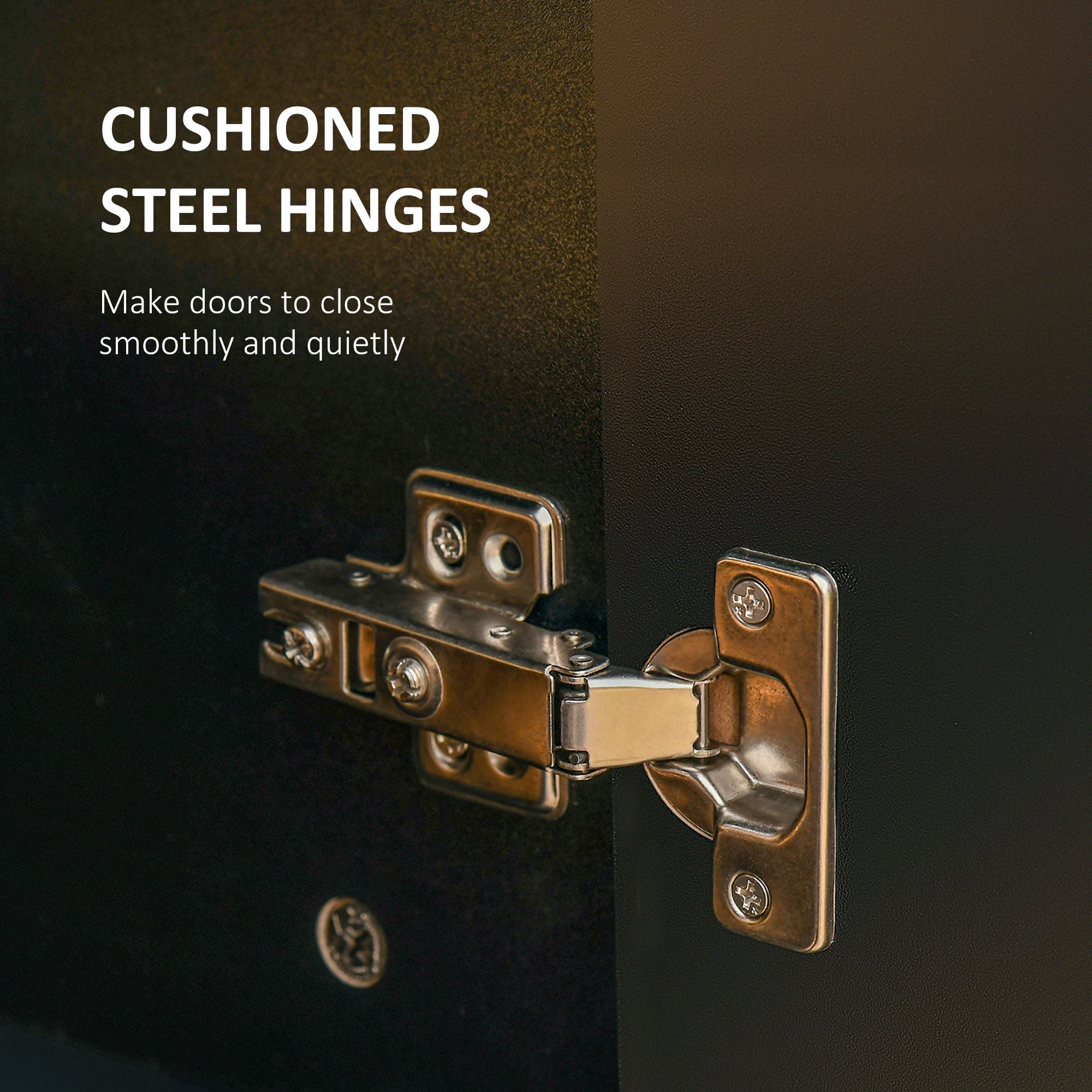 Rangement flexible et silencieux : les quatre portes renferment cinq étagères spacieuses, dont trois réglables sur plusieurs niveaux pour s’adapter à la taille de vos articles. Les charnières à fermeture douce assurent un mouvement fluide et silencieux, idéal pour une utilisation quotidienne sans contrainte.