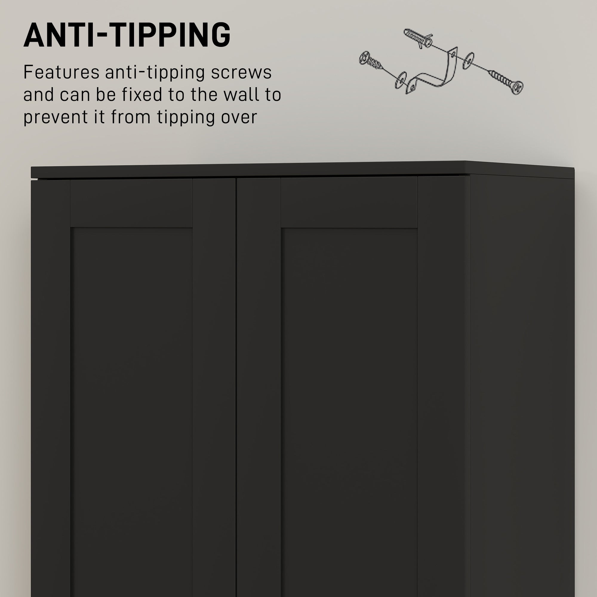 Buffet de rangement noir – Armoire haute moderne avec portes et étagères réglables