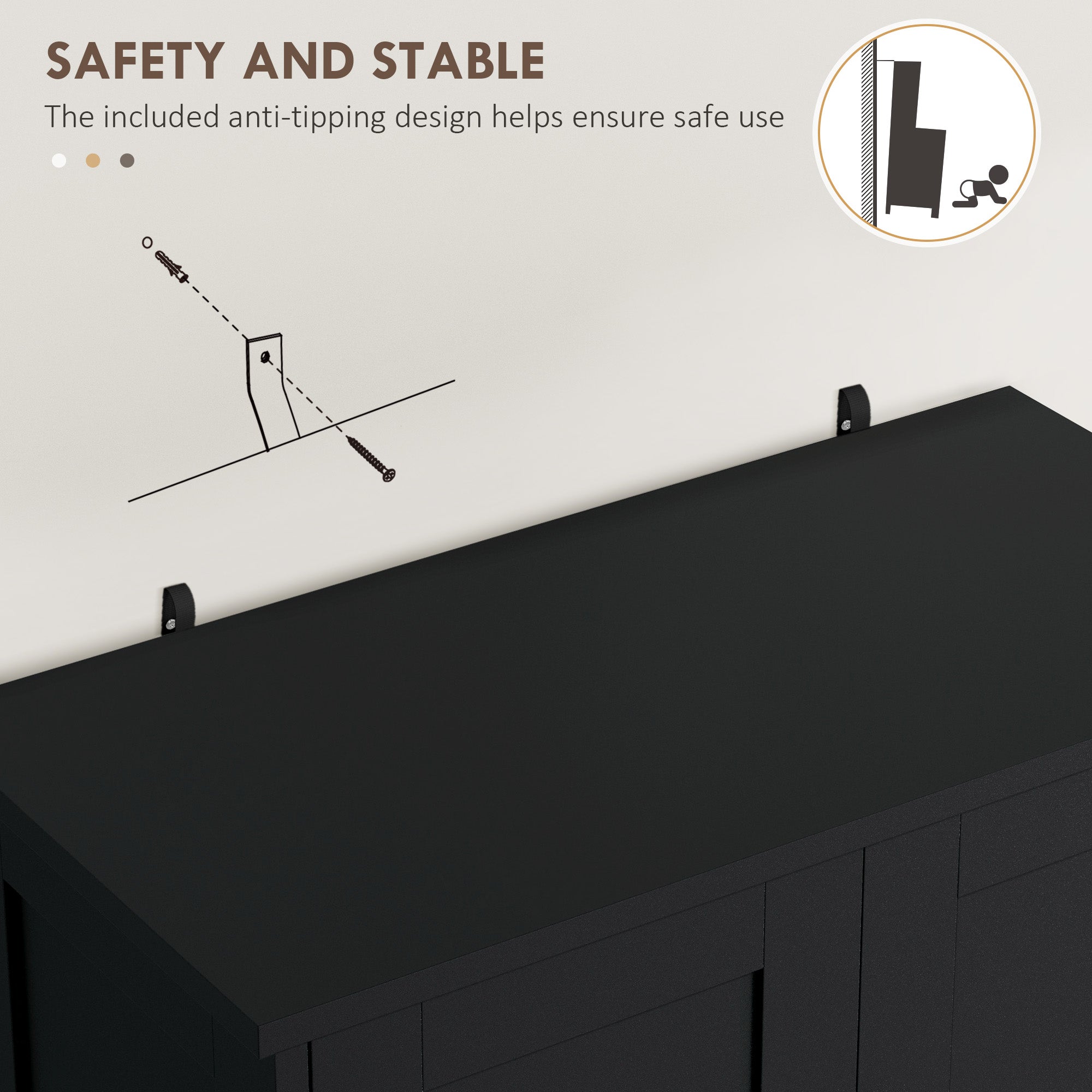 Sécurité et confort d’utilisation : équipé de quatre portes magnétiques pour une fermeture douce et sécurisée, ce meuble intègre également un dispositif anti-basculement pour une fixation stable et sécurisée contre le mur.