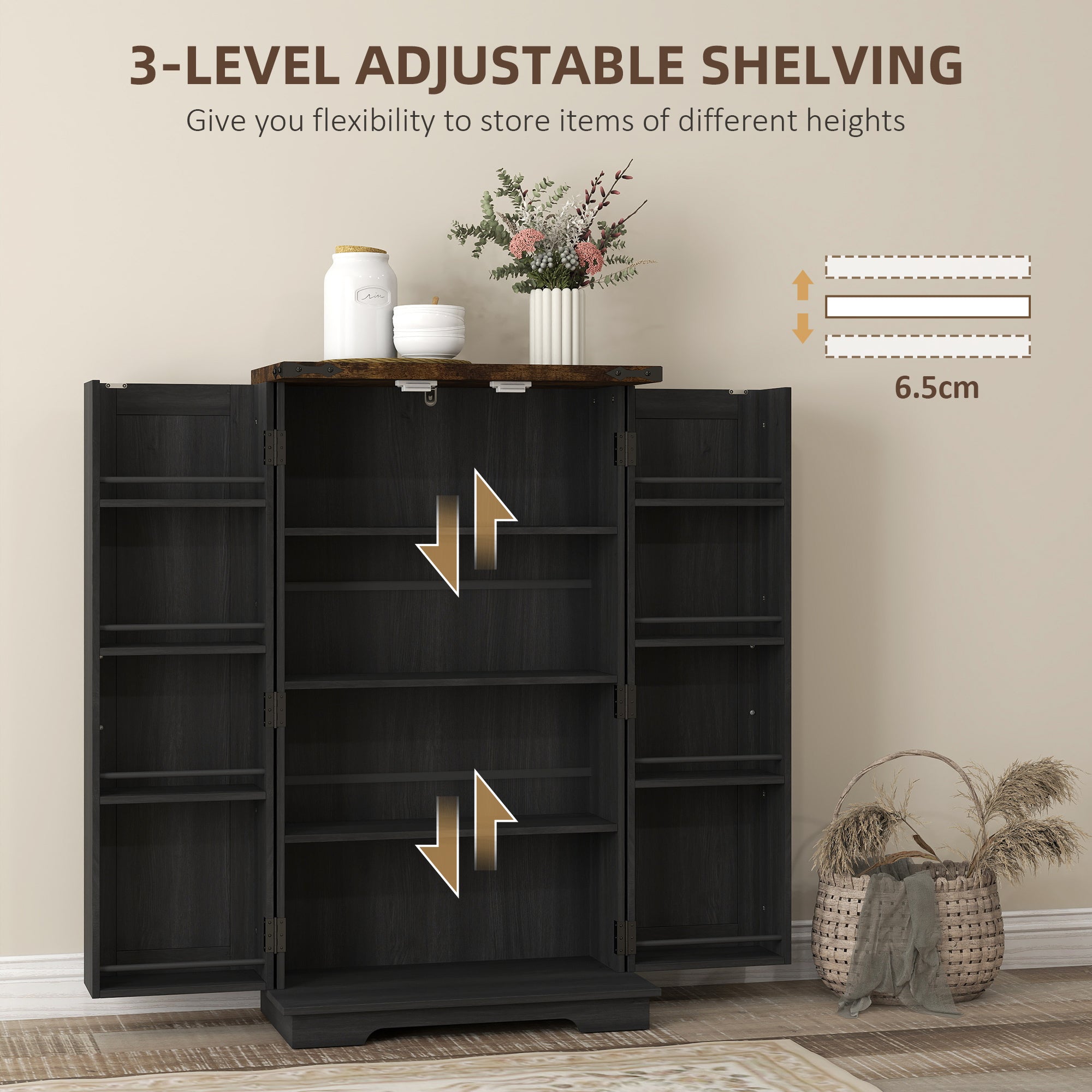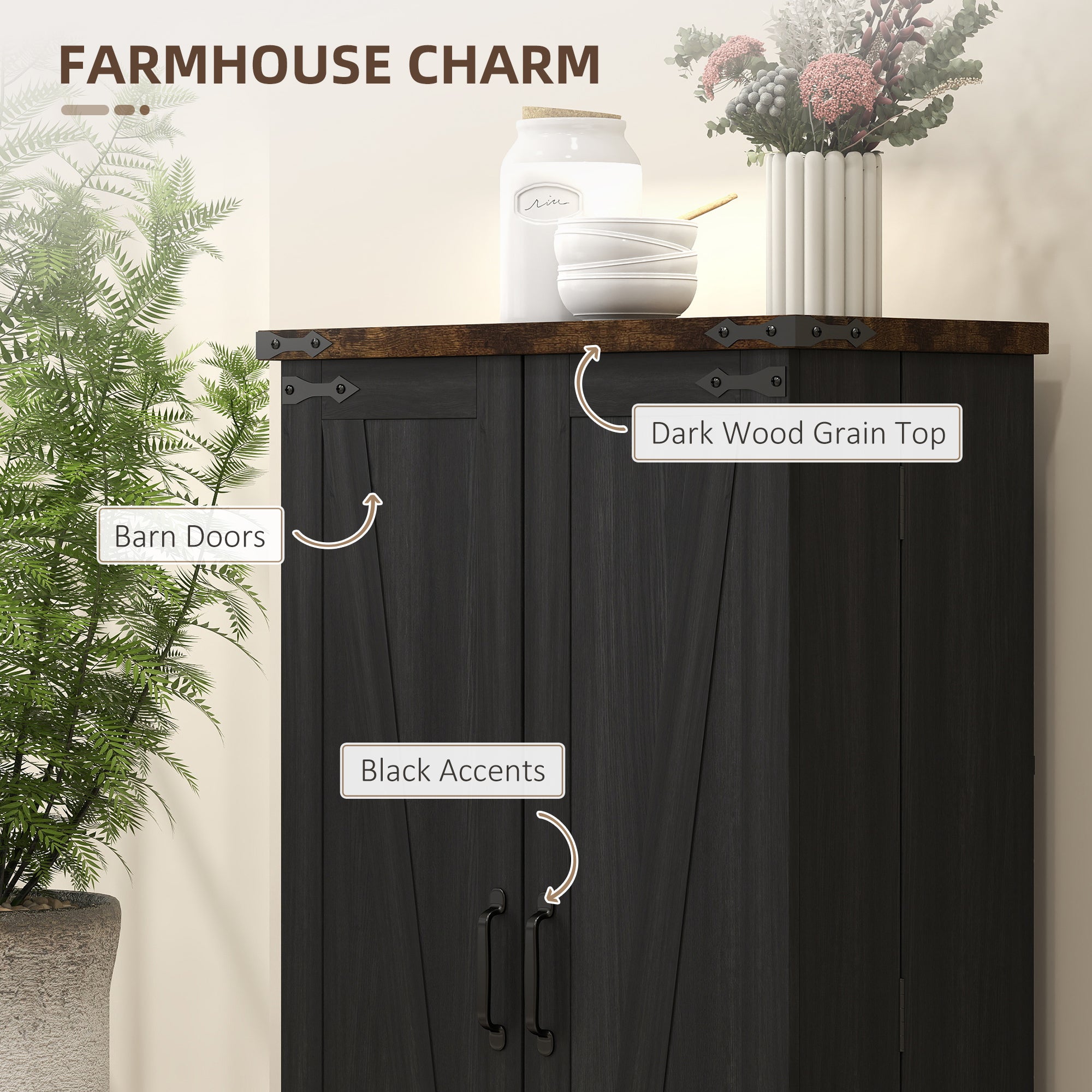 Garde-manger noir style campagnard – Meuble de cuisine avec portes de grange et étagères multiples