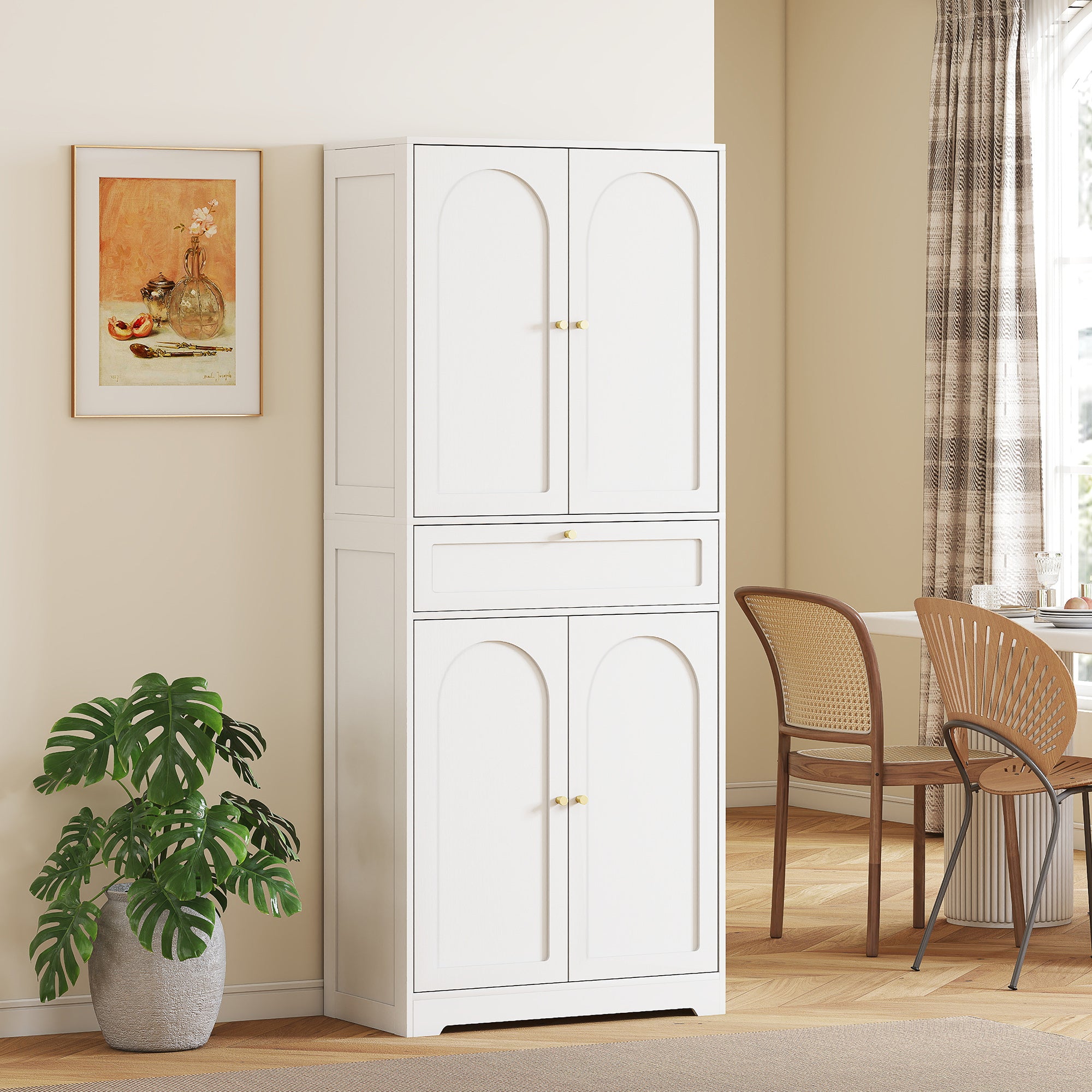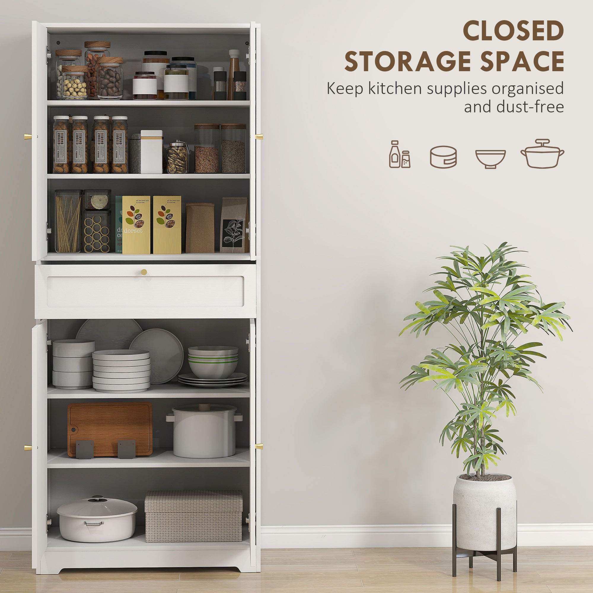 Armoire de rangement de cuisine blanche – Meuble garde-manger avec tiroir et étagères réglables