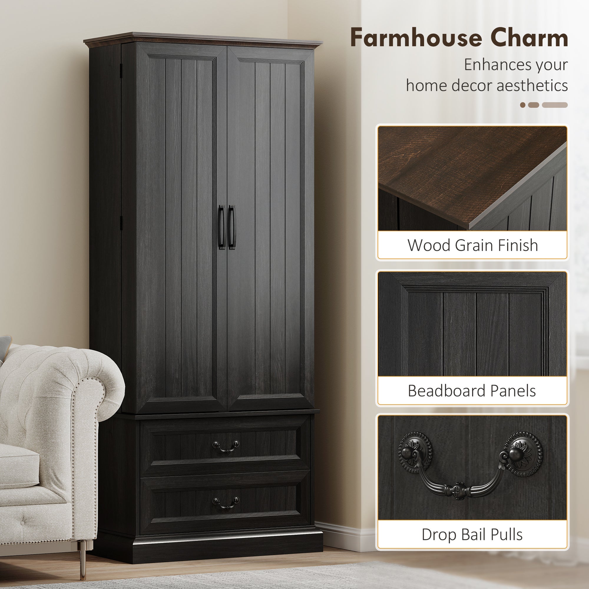 Élégance rustique et modernité : sa finition noire élégante combinée à des détails de style ferme crée un équilibre entre authenticité et raffinement. Ce garde-manger s’intègre parfaitement dans les cuisines contemporaines, ajoutant une note de caractère à votre intérieur.