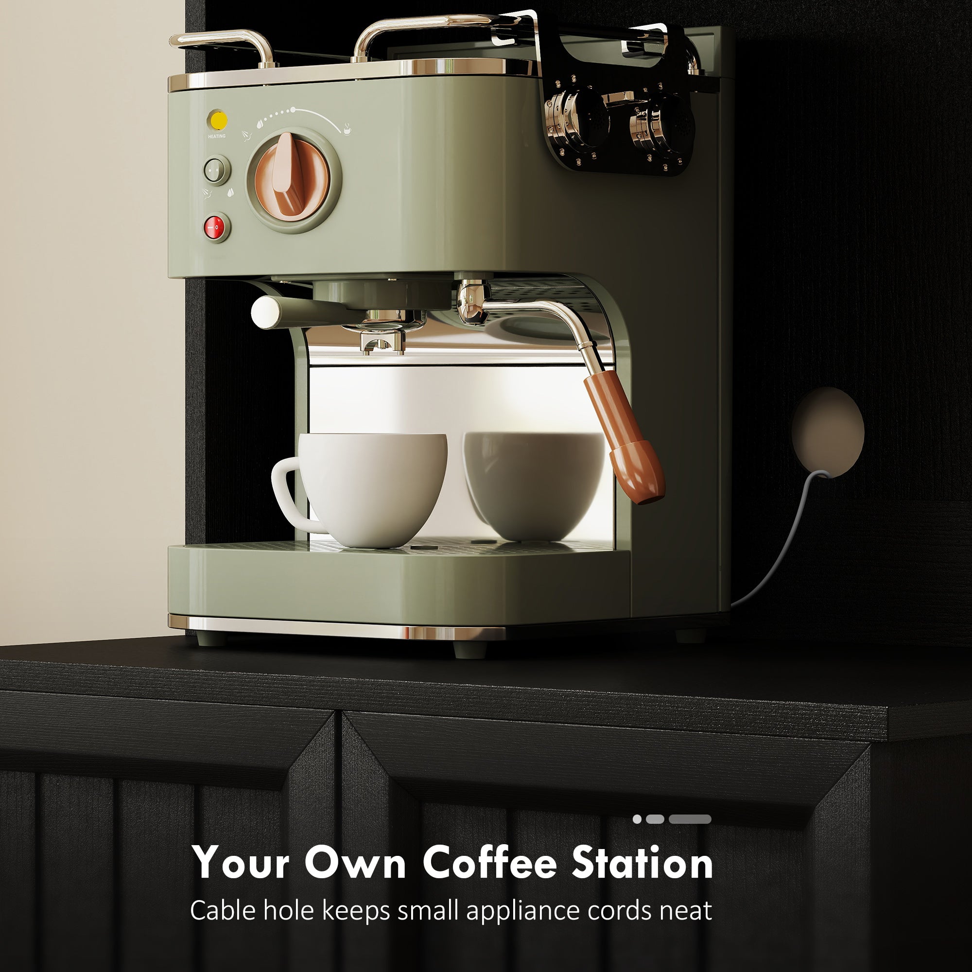 Espace fonctionnel et coin café intégré : son vaste plan intermédiaire, conçu pour accueillir vos petits appareils électroménagers, devient un véritable coin café ou station de petit-déjeuner. Le trou pour câble intégré garde vos fils bien organisés, créant une zone esthétique et ordonnée sans enchevêtrement disgracieux.