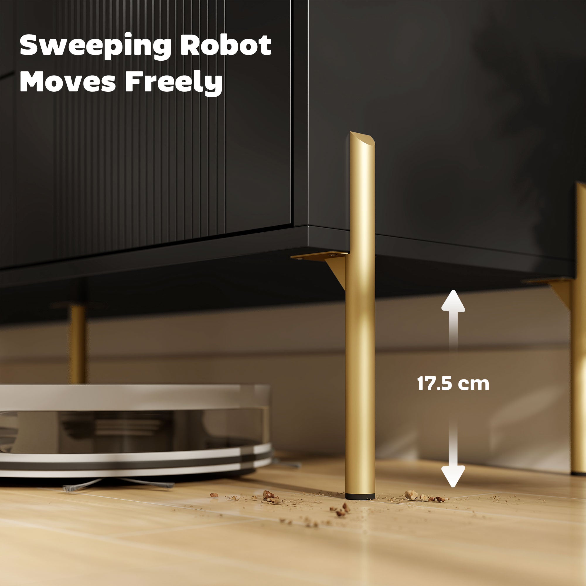 Entretien facile et sécurité accrue : Les pieds surélevés permettent un nettoyage facile sous le meuble, y compris avec un aspirateur robot. Un dispositif anti-basculement est inclus pour une installation sécuritaire, idéale pour les familles.