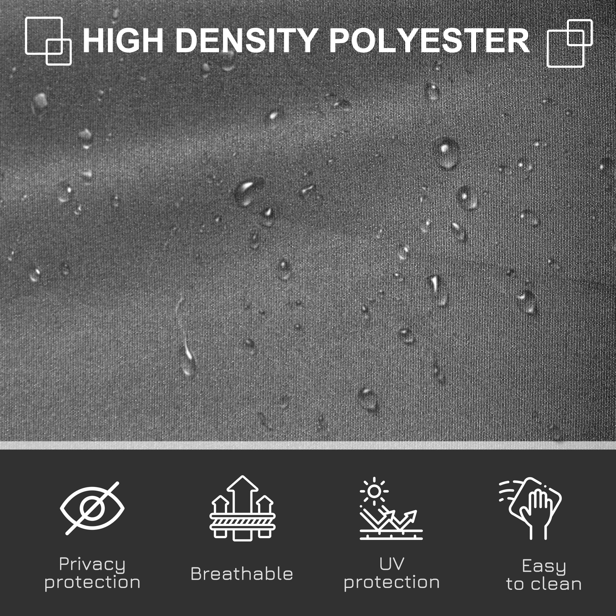 Sa structure en acier de haute qualité assure une excellente robustesse et une longue durée de vie. Le tissu en polyester avec revêtement PA est respirant, imperméable, résistant aux UV et facile à nettoyer, garantissant une utilisation fiable à l’intérieur comme à l’extérieur.