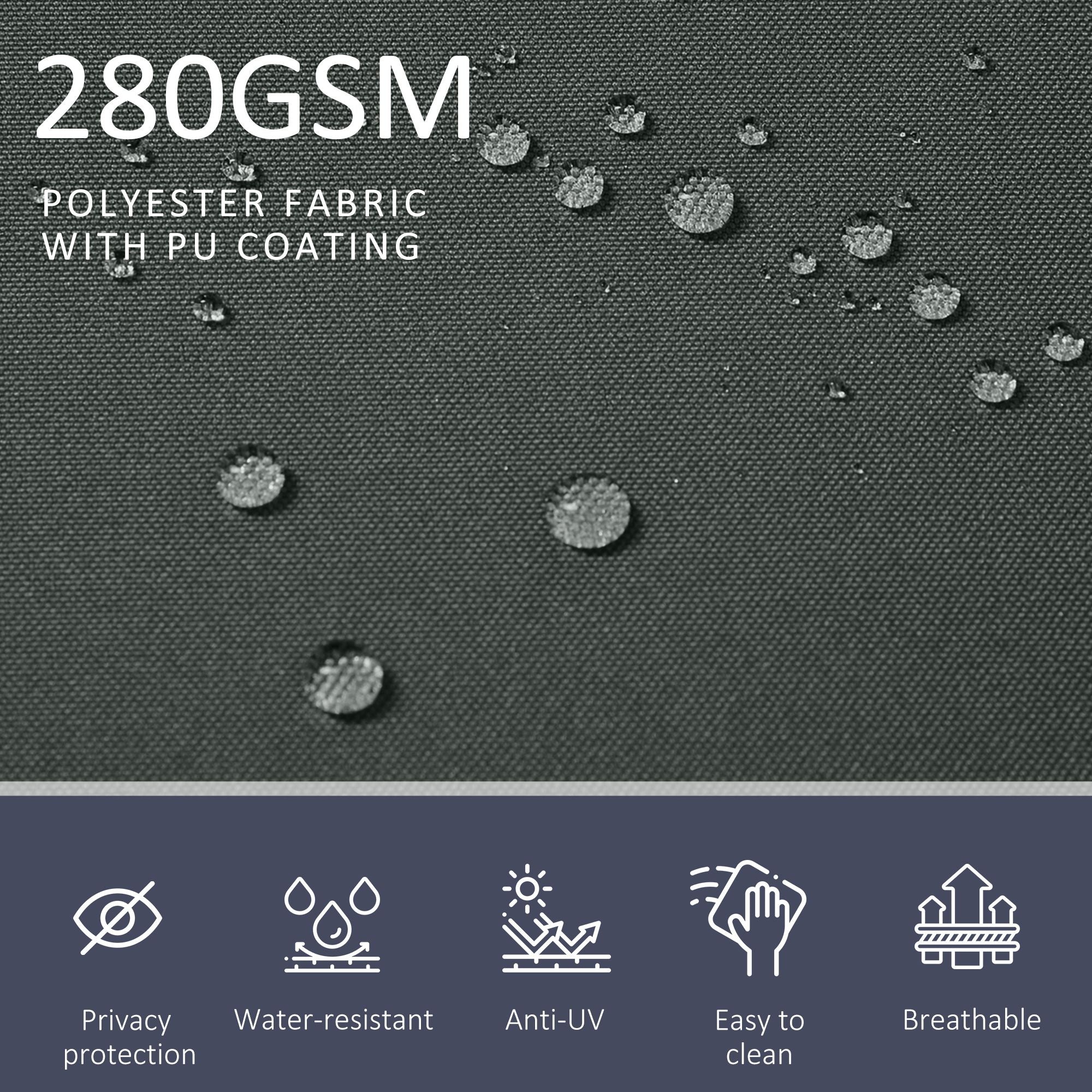 La structure entièrement métallique assure une excellente robustesse et une résistance accrue à la rouille. Les parois latérales en polyester avec revêtement PA offrent une protection UV efficace et une bonne résistance à l’eau, idéales pour une utilisation extérieure durable.