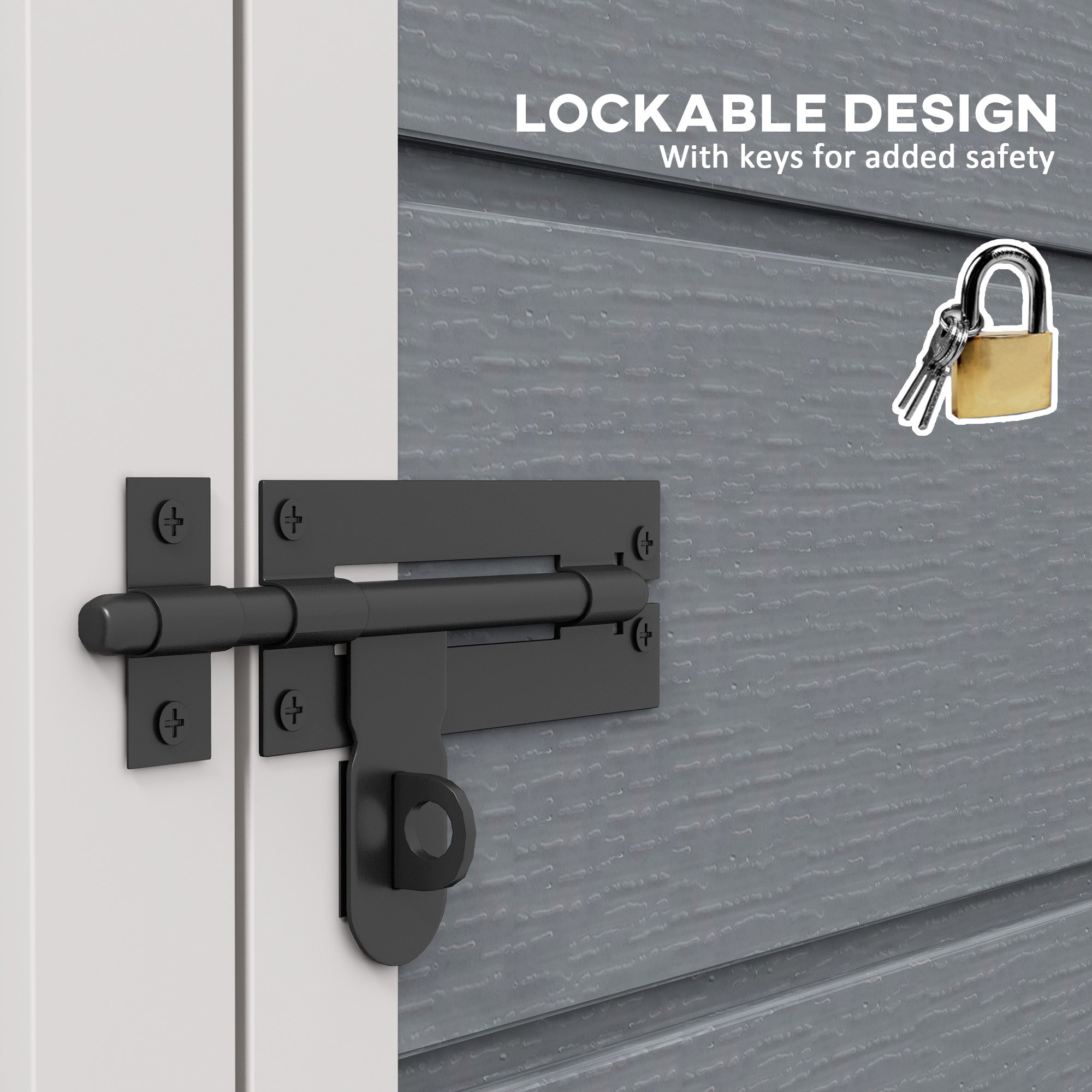 - Contient : 1 abri de jardin, 1 gant, 1 cadenas, 1 jeu de clés, 1 mode d’emploi