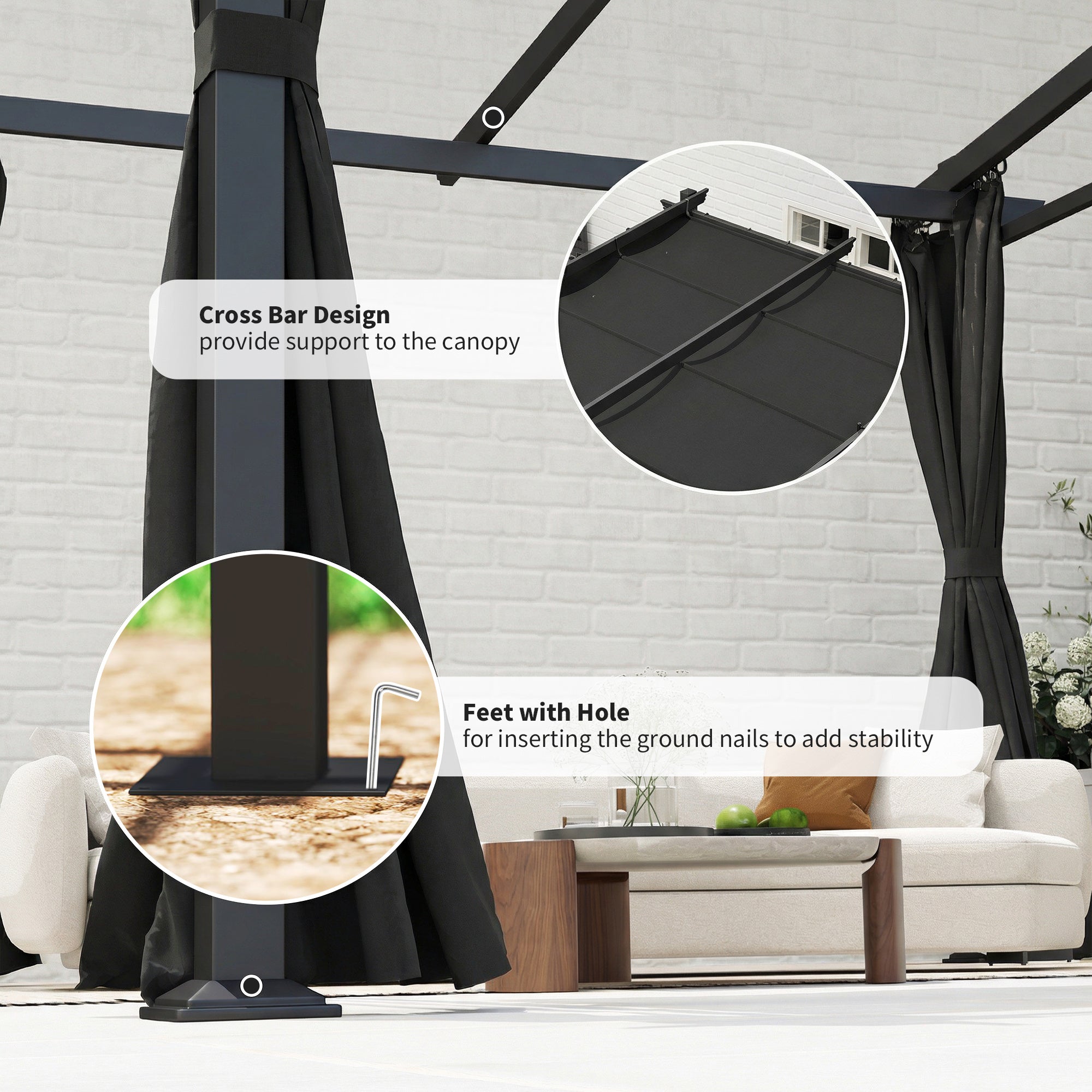 Les quatre rideaux amovibles permettent de bloquer l’éblouissement du soleil et de transformer votre pergola en espace intime et accueillant. Idéale pour la terrasse, le jardin ou la cour arrière, elle crée un lieu parfait pour se détendre, recevoir des invités ou partager des repas à l’extérieur.