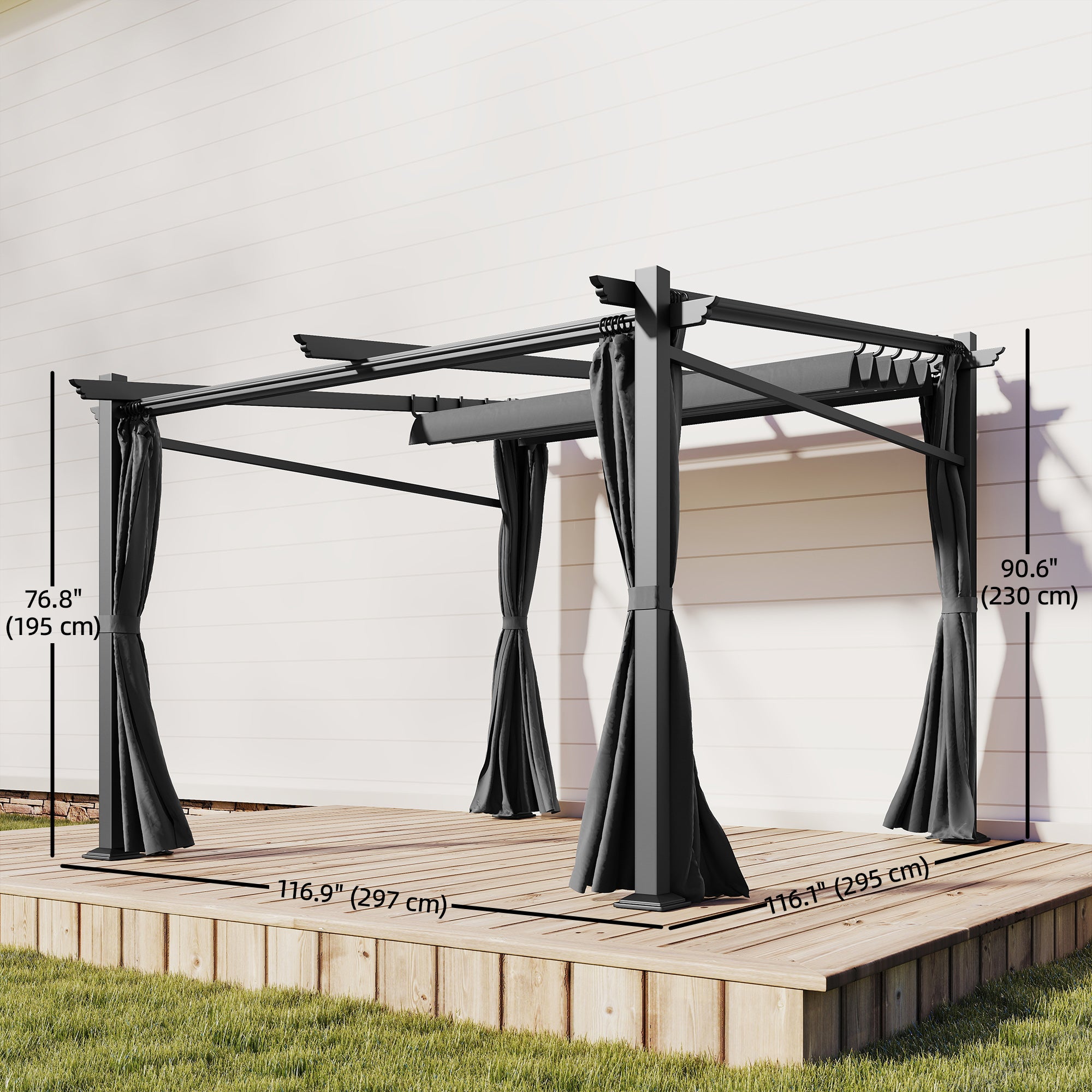 - Contient : 1 pergola avec toile rétractable, 4 rideaux, piquets d’ancrage, vis d’expansion, 1 mode d'emploi