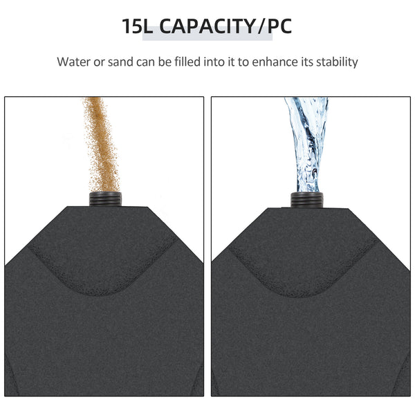 - Conception remplissable : Chaque poids de base de parasol peut supporter 15 kg d'eau ou 20 kg de sable. Vous pouvez également le remplir de sable sec, puis ajouter de l'eau pour augmenter le poids.