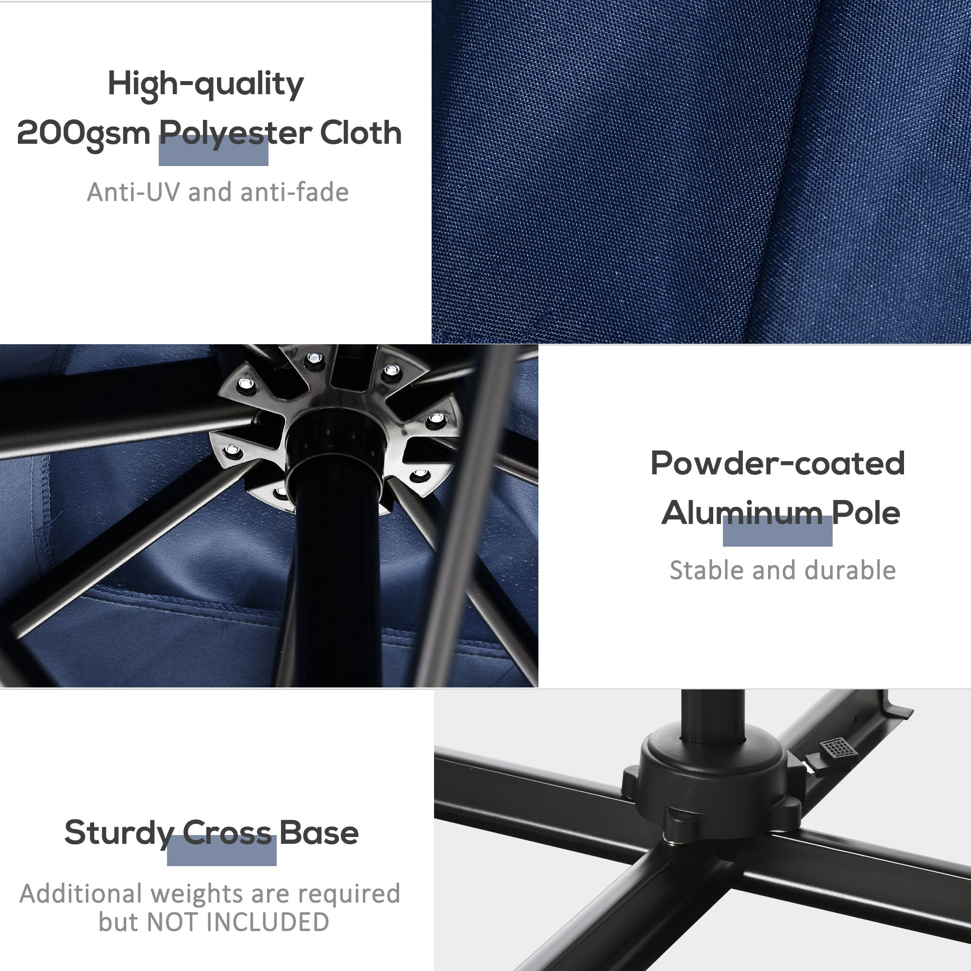 Le mât en aluminium et les huit baleines en acier avec revêtement en poudre assurent robustesse et stabilité. La toile en polyester 200 g résistante aux UV est conçue pour une utilisation durable en extérieur, tandis que la ventilation supérieure favorise la circulation de l’air et aide à prévenir le basculement.
