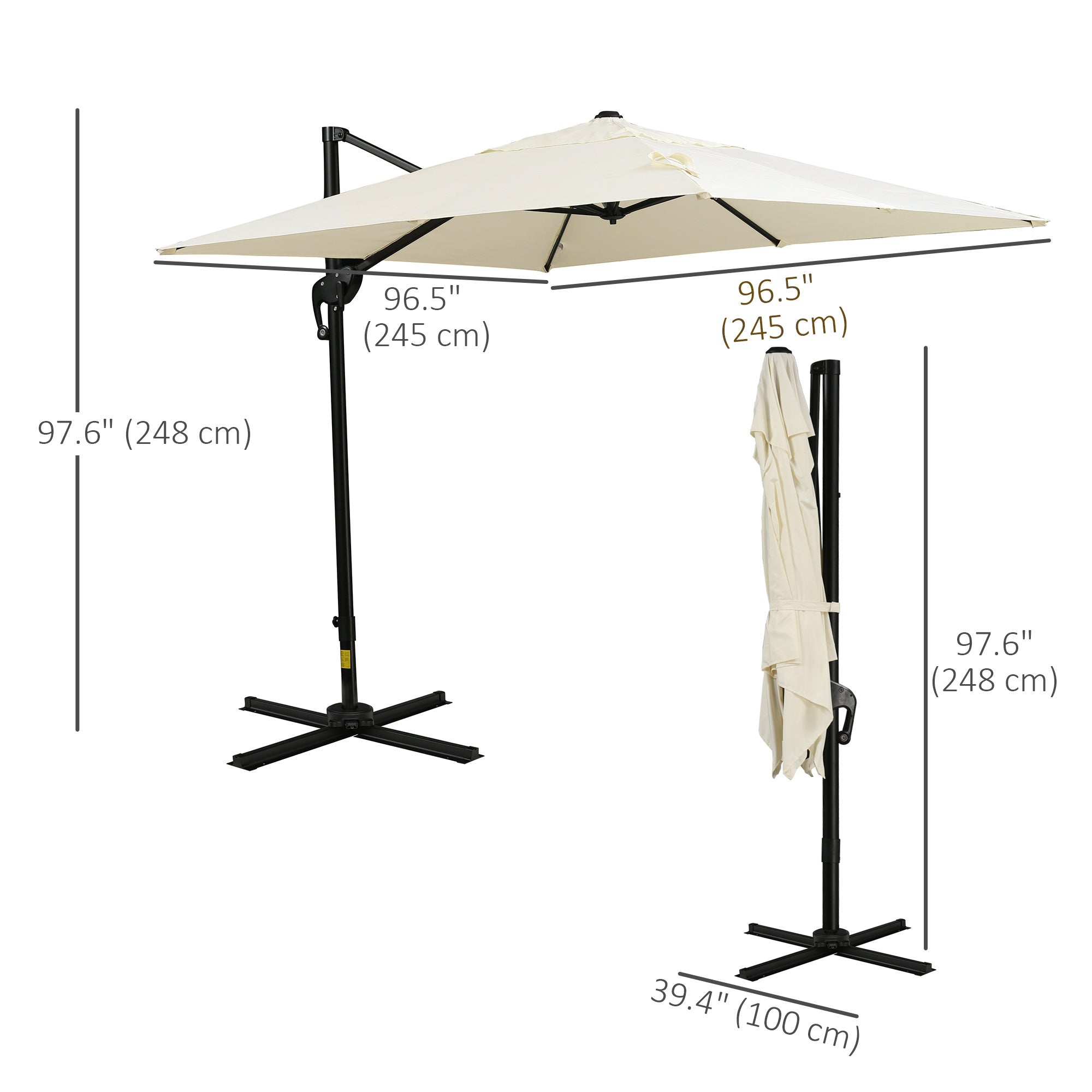 Parasol déporté 8 pi x 8 pi avec rotation 360° et 5 inclinaisons