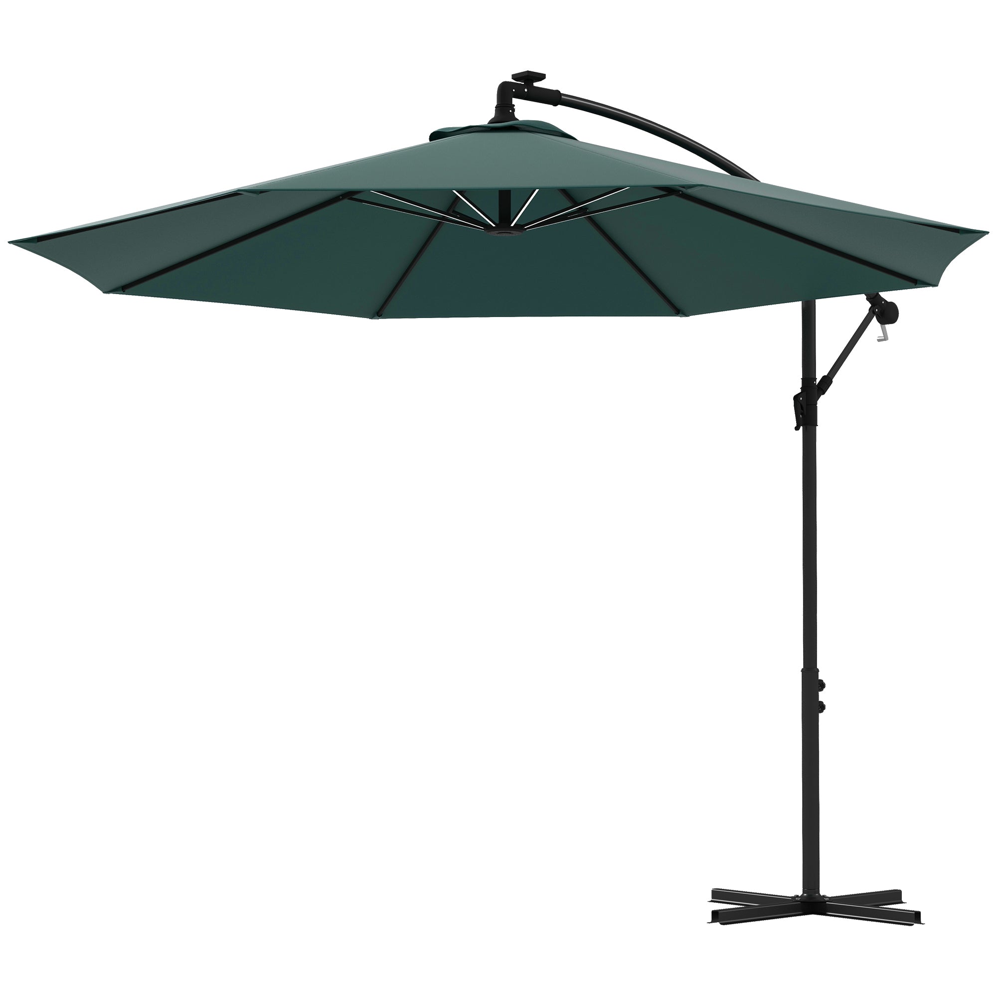 Parasol déporté solaire 9,7 pi avec bandes LED et base en croix