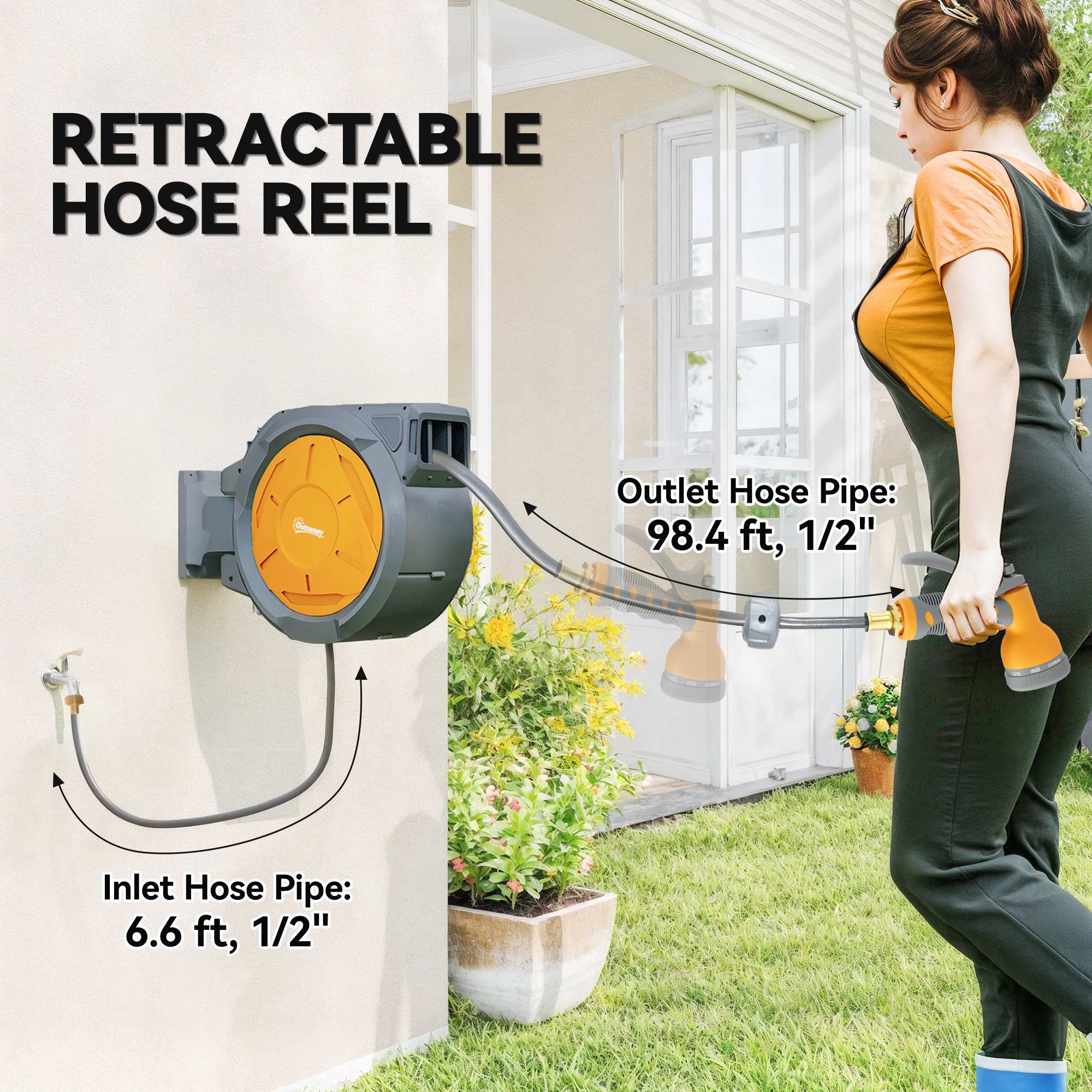 Enrouleur de tuyau mural rétractable 98,4 pi avec pivot 180°