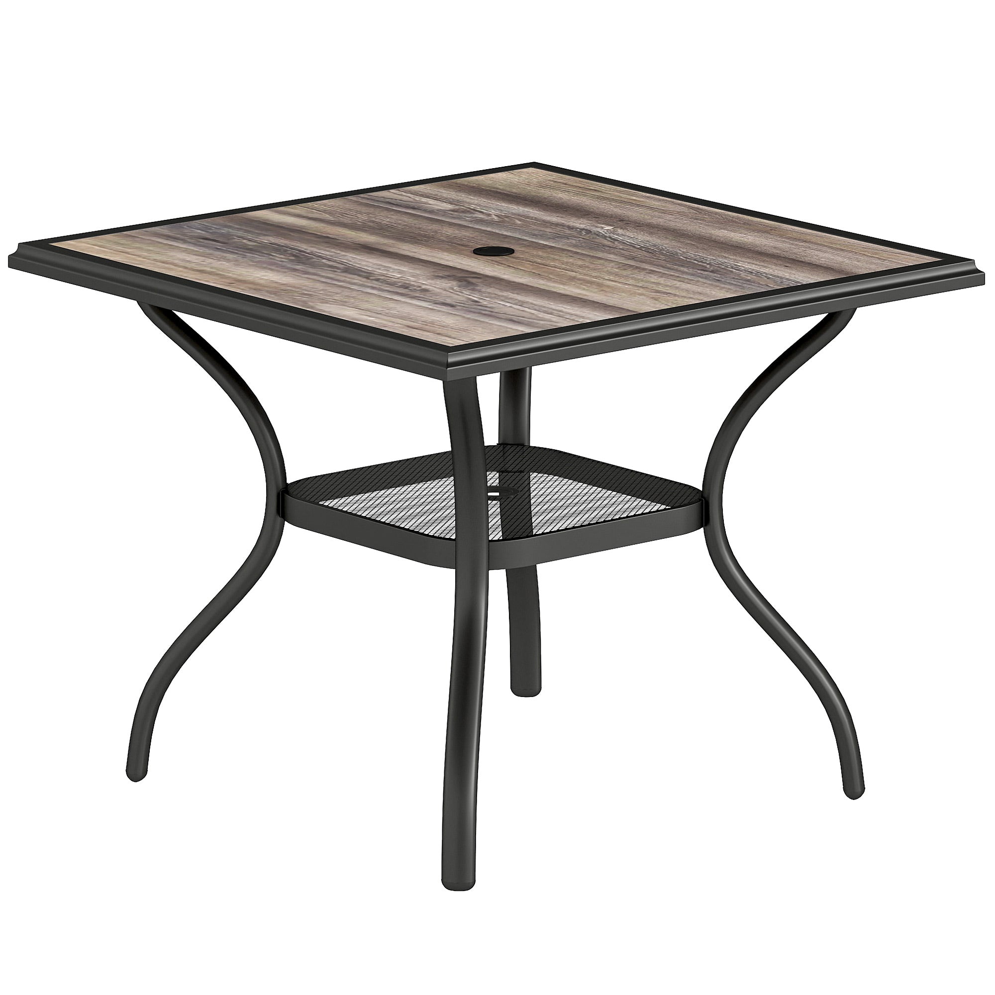 Table de patio carrée avec tablette de rangement et trou pour parasol