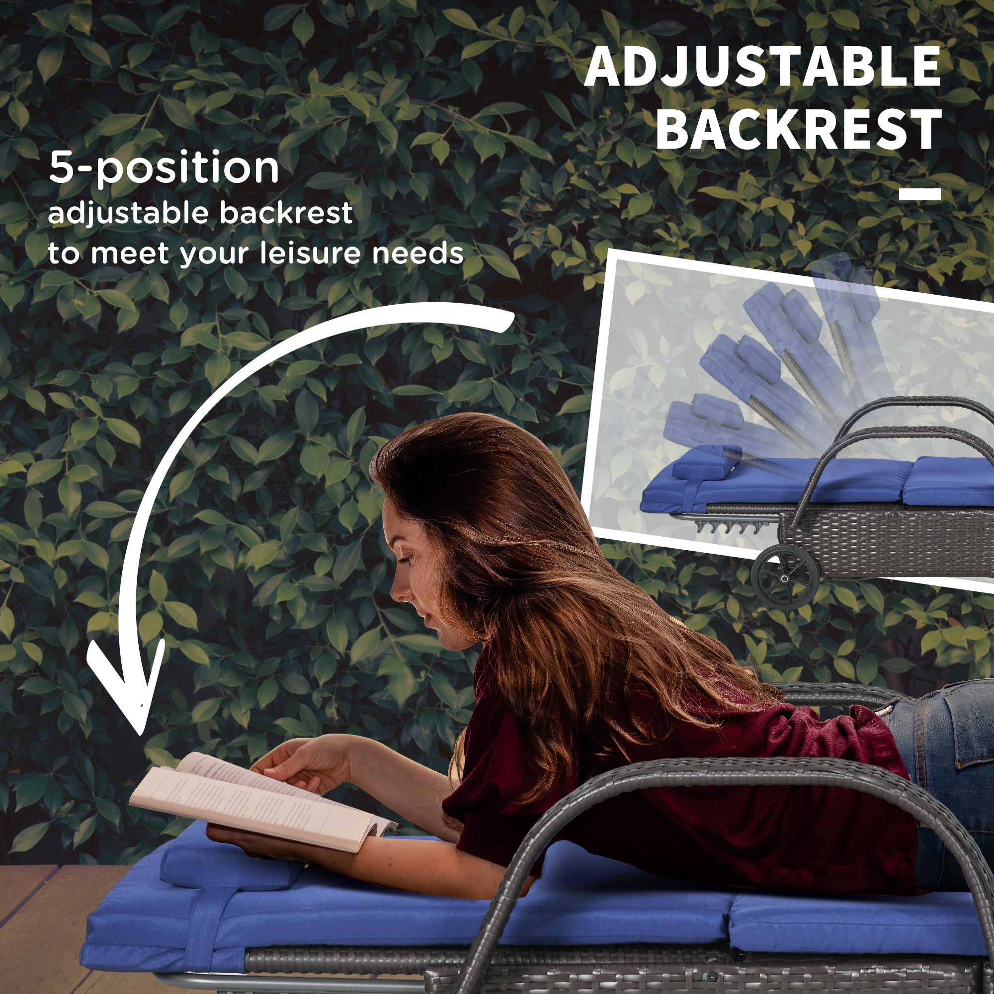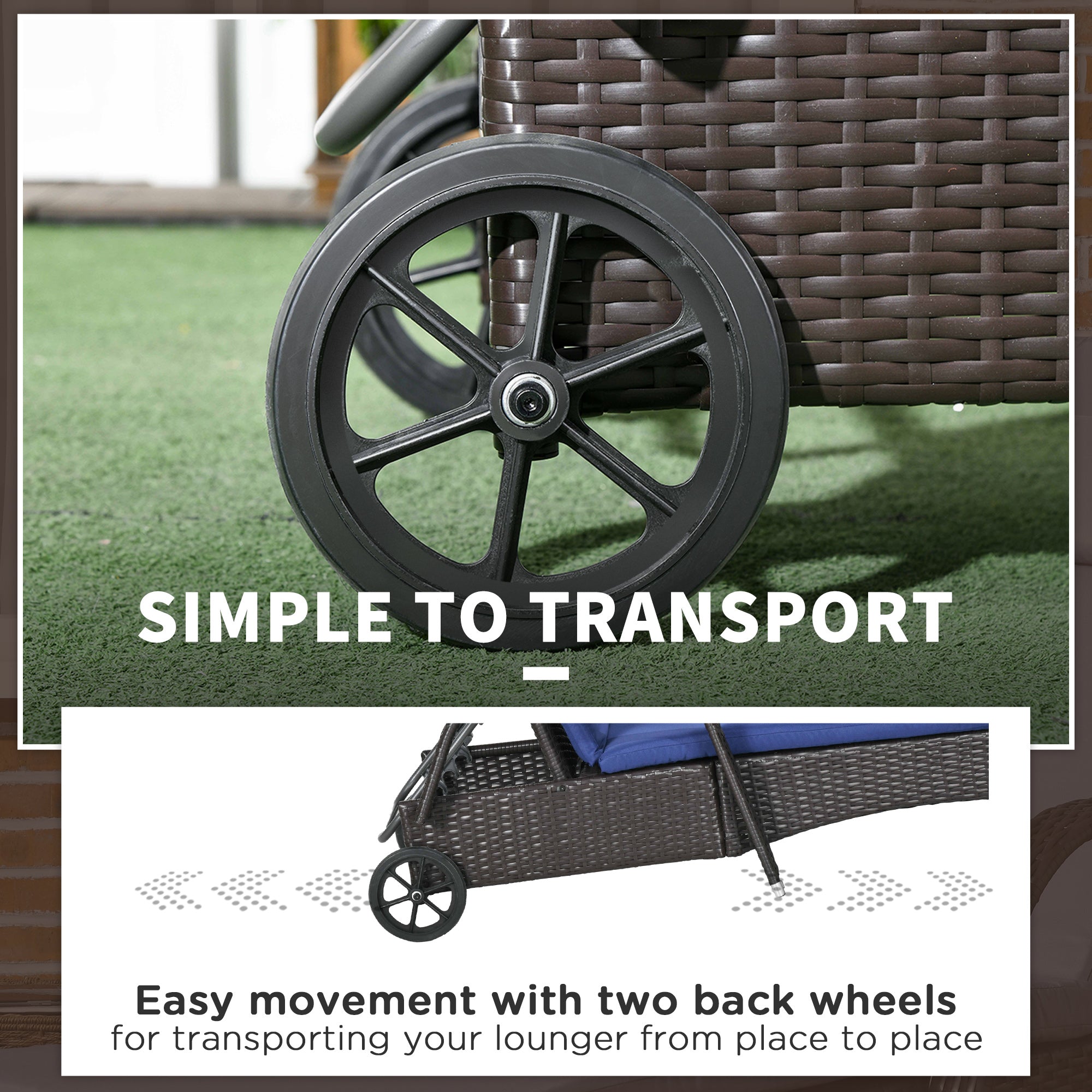 Chaise longue de piscine en résine tressée avec coussin bleu marine