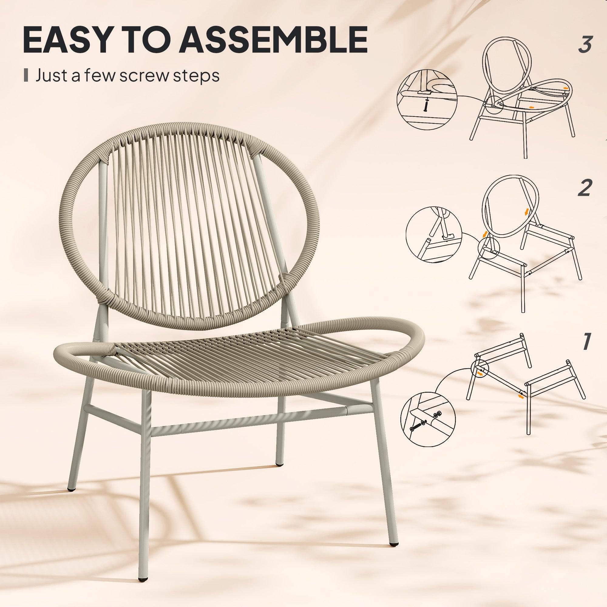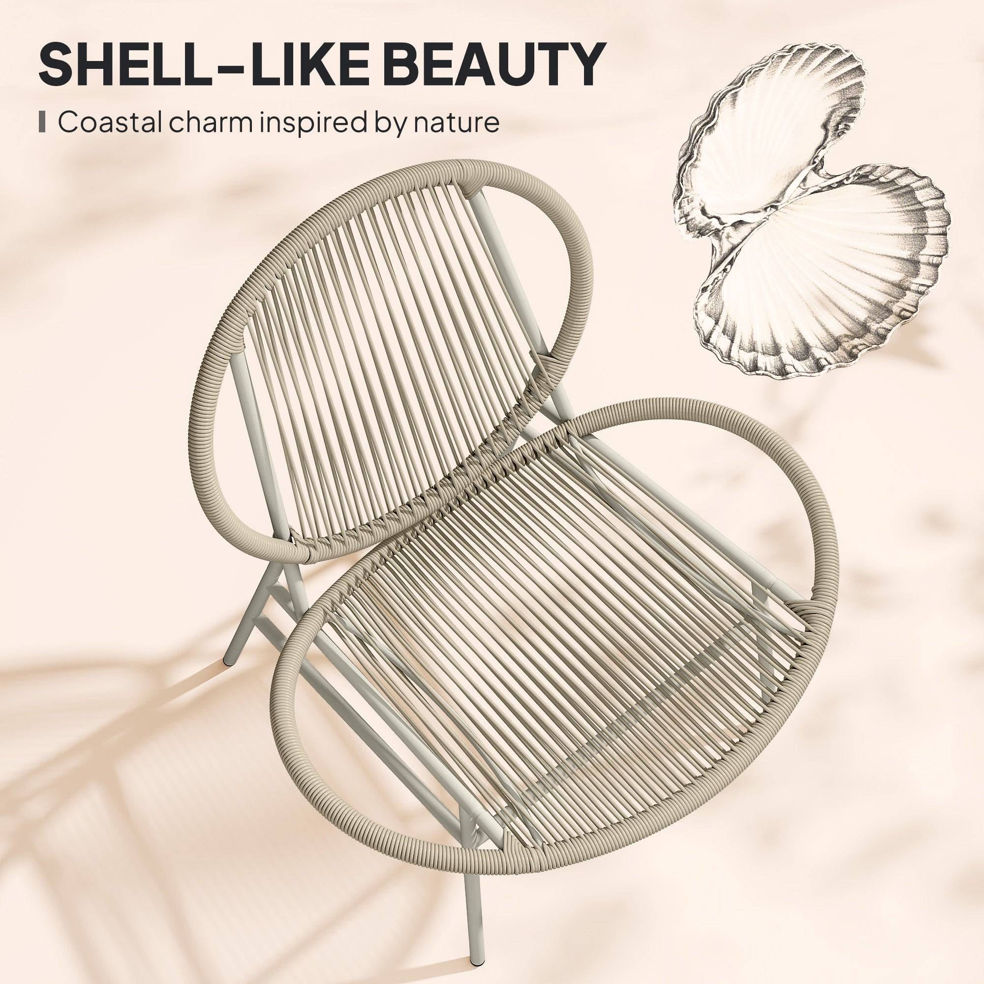 - Ensemble de patio 3 pièces : Comprend deux chaises en forme de coquillage et une table basse ronde avec plateau en acier. Cet ensemble de mobilier de patio extérieur est idéal pour les réunions intimes, pour siroter un verre ou un café, ou pour admirer le coucher de soleil sur une petite véranda, une terrasse ou un balcon.
