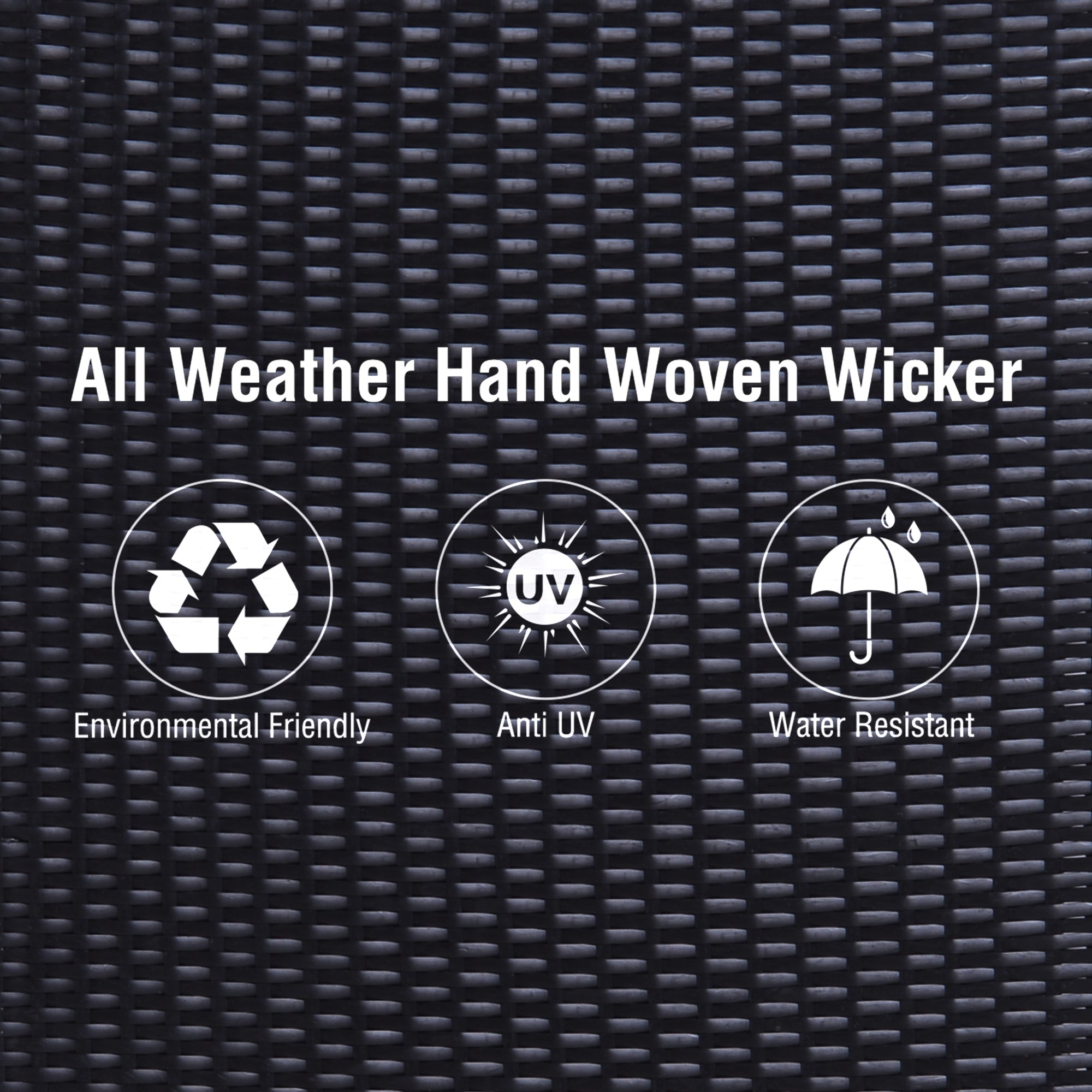 La structure en acier galvanisé thermolaqué offre une excellente résistance à la rouille et une durabilité adaptée à un usage extérieur prolongé. Le rotin PE est résistant aux intempéries et conserve son apparence au fil du temps, même exposé à l’humidité et au soleil.