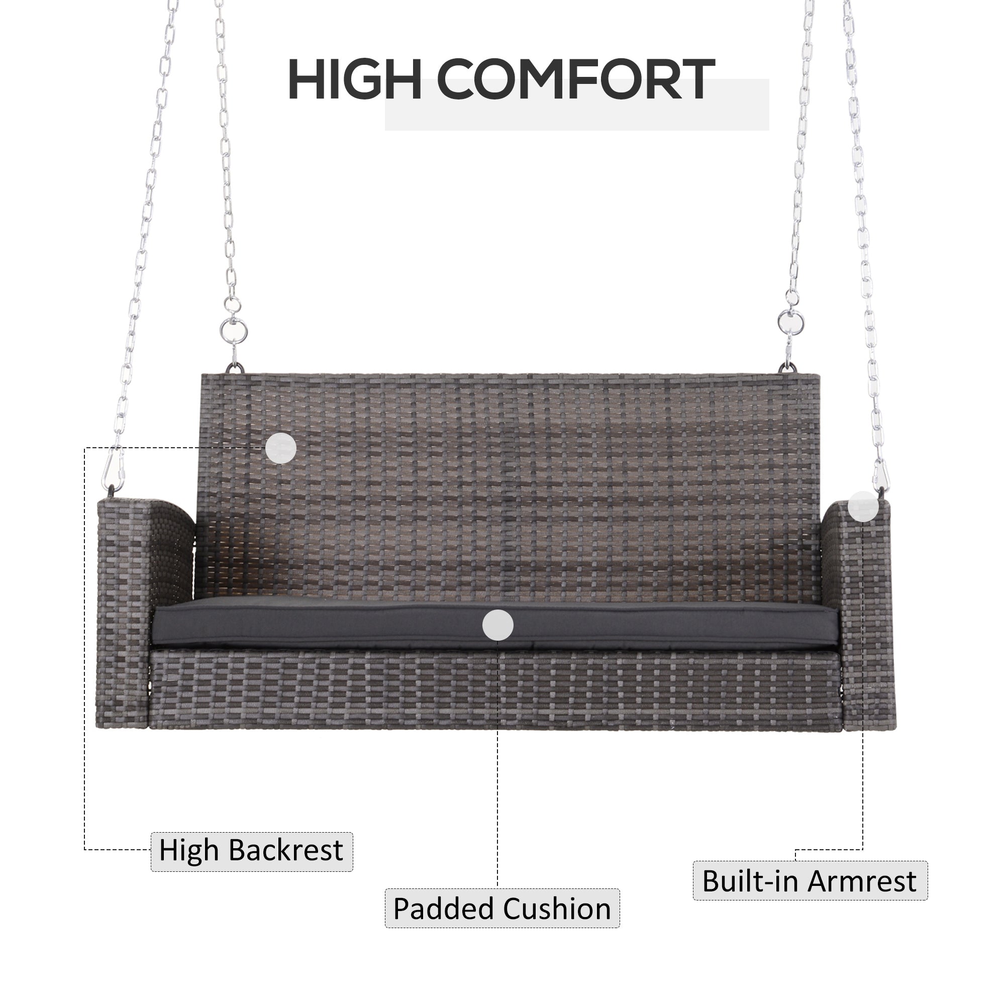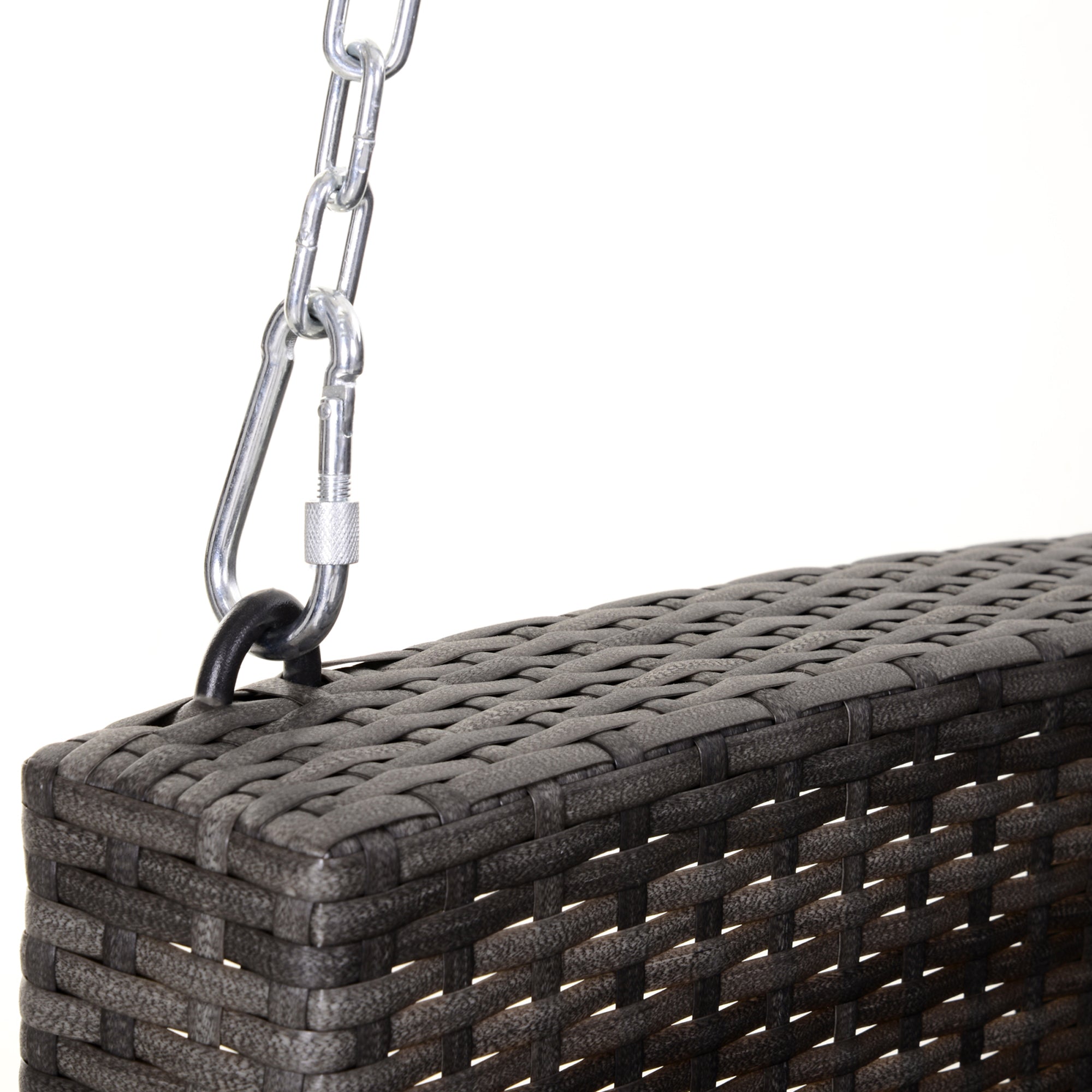 Fabriquée en rotin PE résistant aux intempéries avec une structure en acier robuste et antirouille, cette balancelle est conçue pour durer. Les deux chaînes de suspension solides assurent une stabilité fiable, supportant jusqu’à 550 lb.