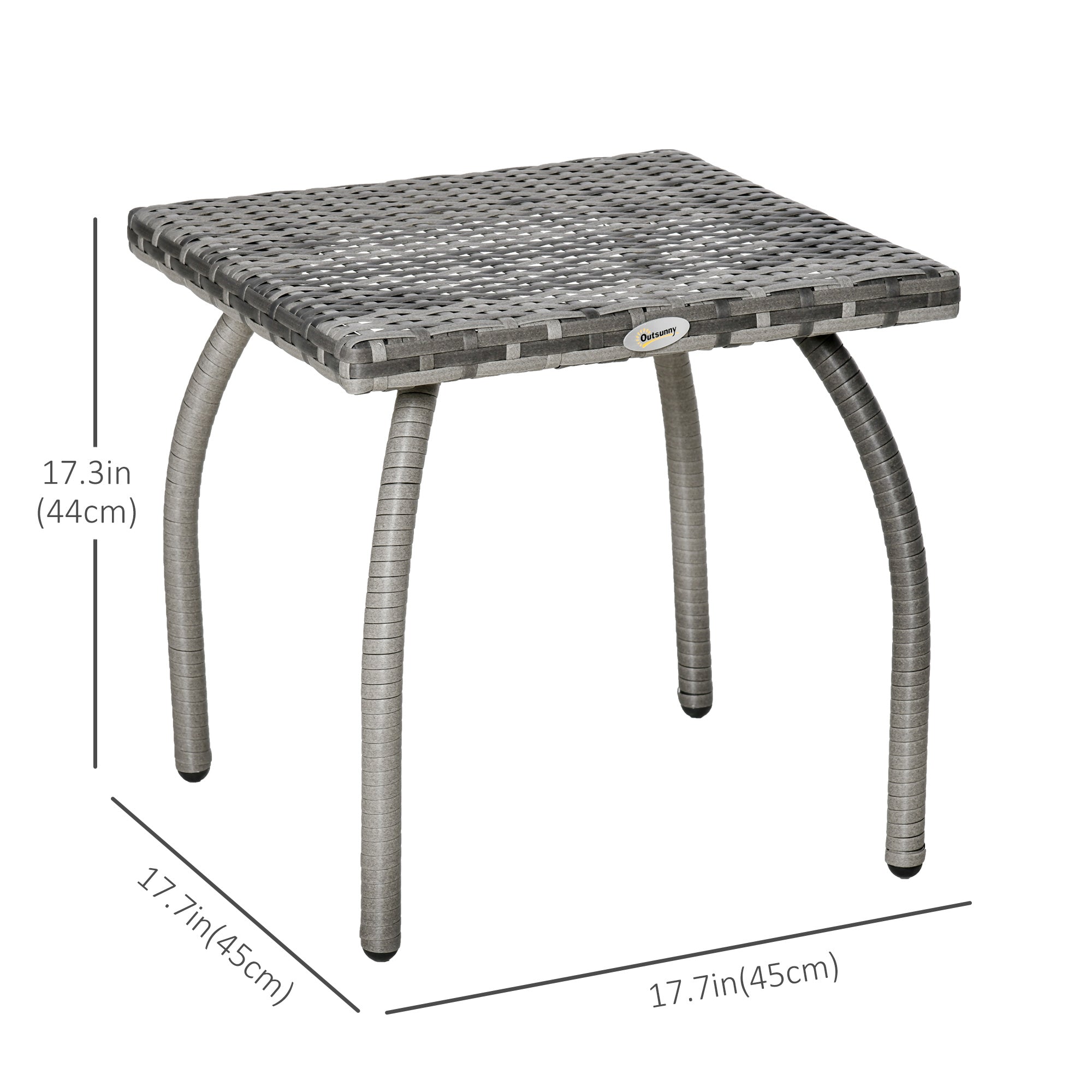 La structure en acier assure solidité et durabilité, tandis que le rotin PE résistant aux intempéries, aux UV et à l’humidité garantit une utilisation prolongée en extérieur. Le plateau rigide en polypropylène offre une surface plane, stable et facile à nettoyer.