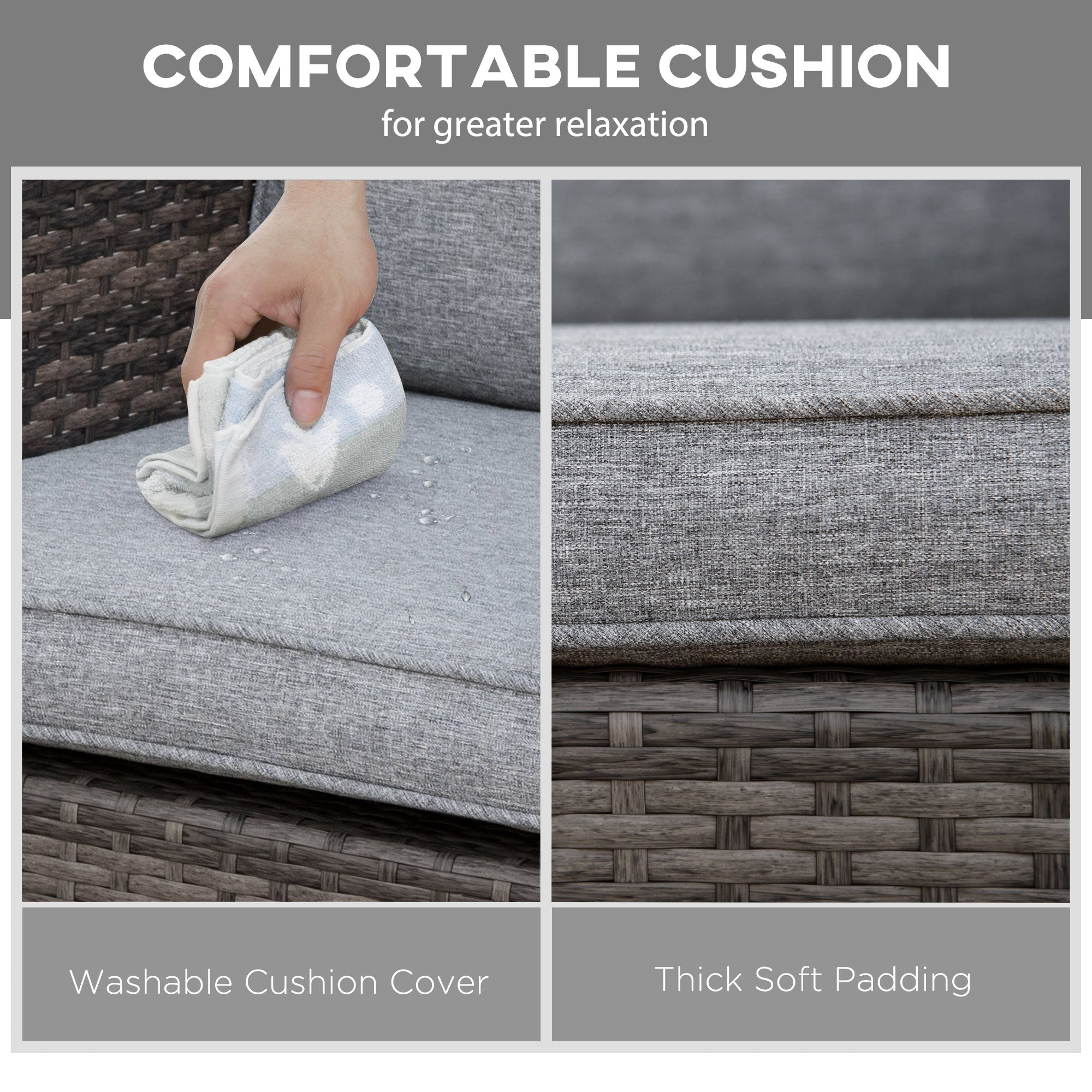 Matériaux de qualité : Conçu avec une structure en acier robuste et un rotin PE résistant aux intempéries, ce fauteuil assure une excellente durabilité. Les coussins épais et rembourrés ajoutent un confort supérieur, tandis que leurs housses zippées facilitent l’entretien.