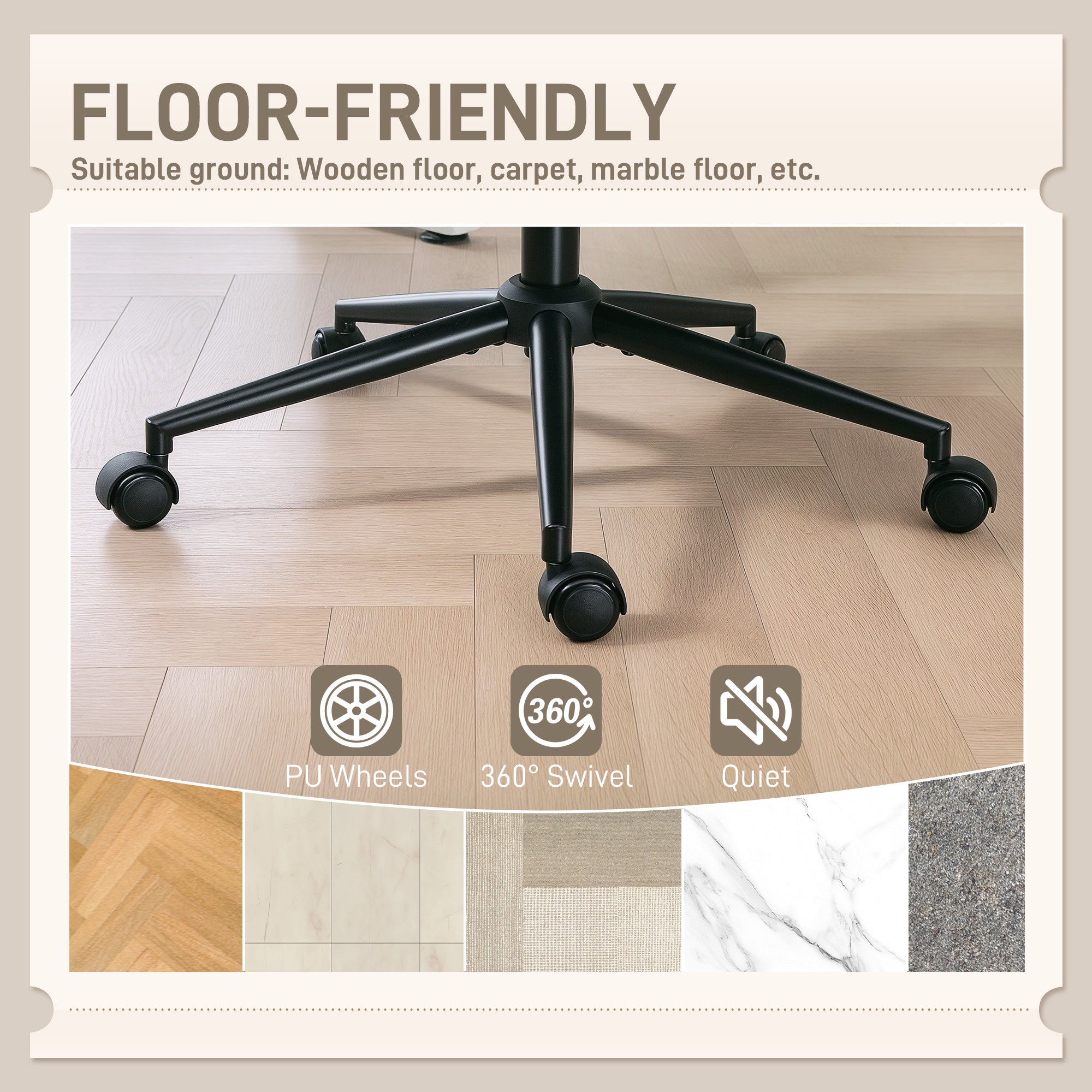 Utilisation polyvalente : Idéal pour le télétravail, la lecture ou la détente, ce fauteuil s’adapte à vos besoins grâce à son siège et ses accoudoirs réglables en hauteur. Sa fonction de bascule douce favorise la relaxation entre deux périodes de concentration, tandis que sa rotation à 360° et ses roulettes silencieuses garantissent une mobilité fluide.