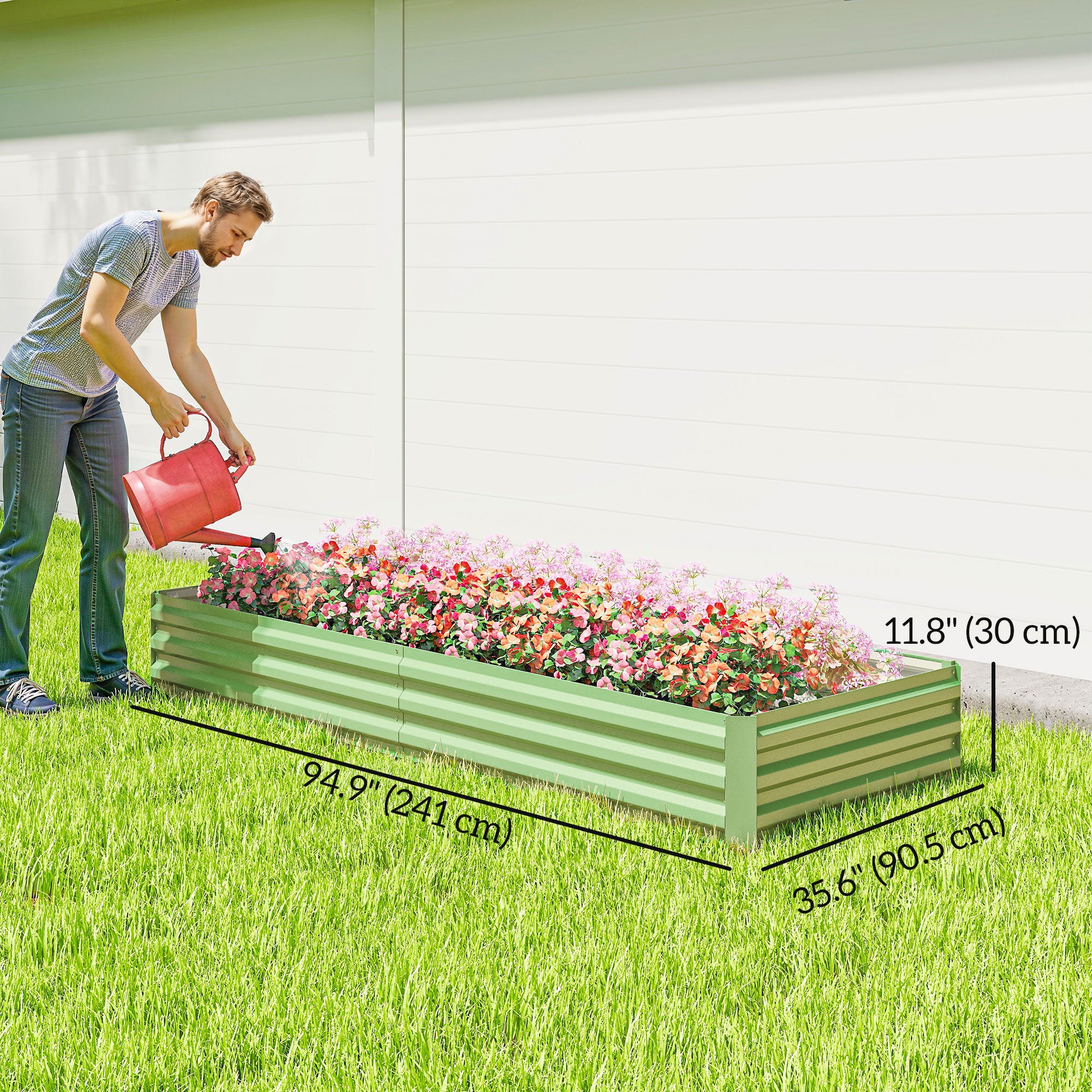 - Surface de plantation : 93,7 po L x 34,6 po l x 11,8 po H (238 x 88 x 30 cm)
